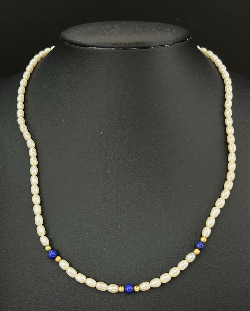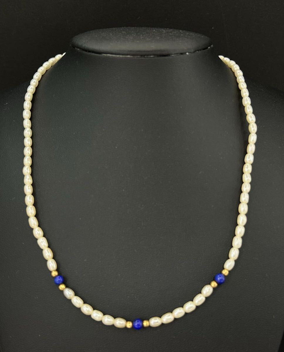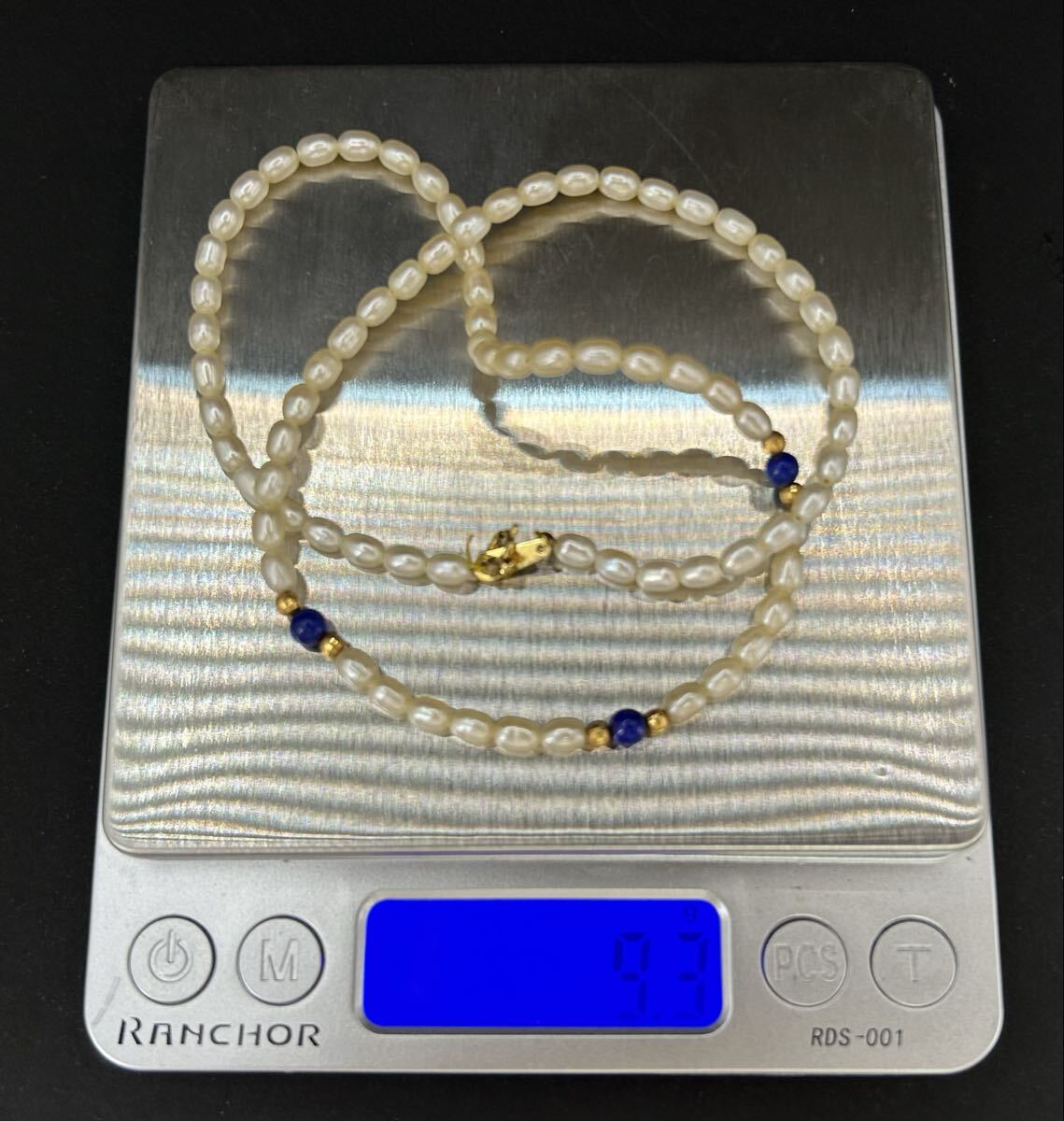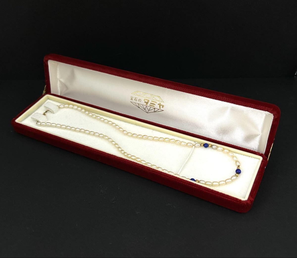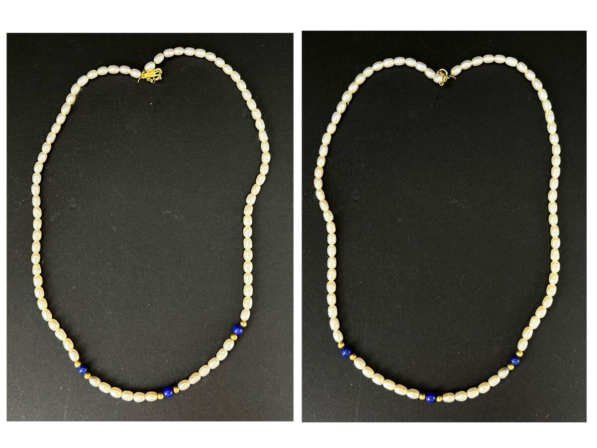 【SY368】淡水パール ネックレス 淡水 パール ゴールド ブルー 真珠 楕円形 留め具 K18 重量約9.3g ジュエリー アクセサリー ケース付