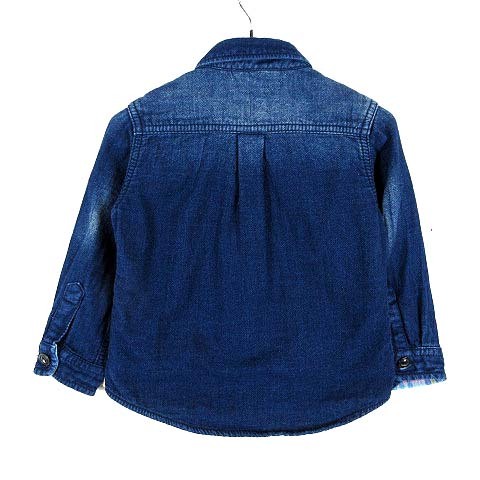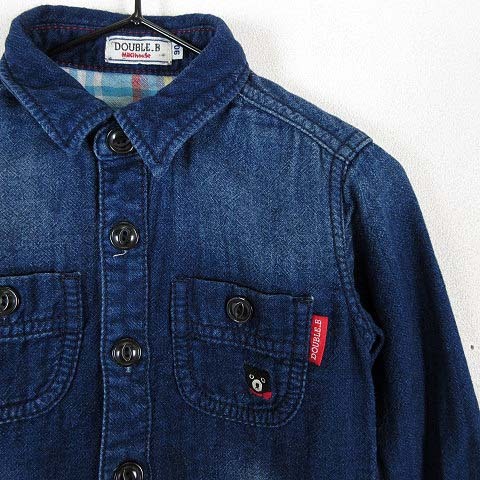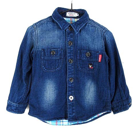 ミキハウス ダブルビー ダブルB MIKIHOUSE DOUBLE.B デニムシャツ くま ロゴ 刺繍 マリン 装飾ボタン 裏チェック 長袖 90 インディゴブルー