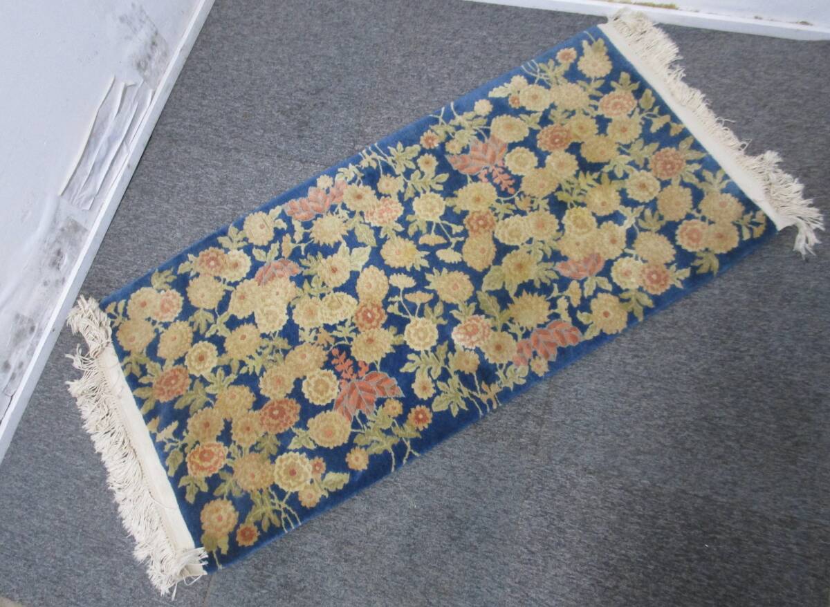 ■得々■vintage/中国手織/敦煌緞通/中国段通/玄関マット/毛100%/天然草木染色堅牢織/63㎝×123㎝
