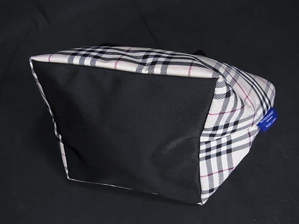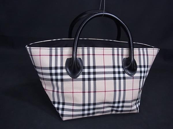 1円 ■極美品■ BURBERRY バーバリーブルーレーベル ノバチェック ナイロン×レザー ハンドバッグ トート ベージュ系×ブラック系 FR4991
