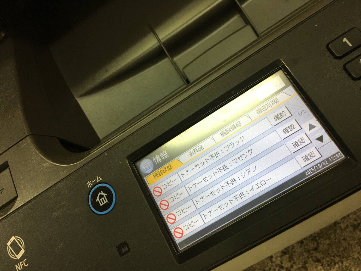 トナー不良と表示されています。