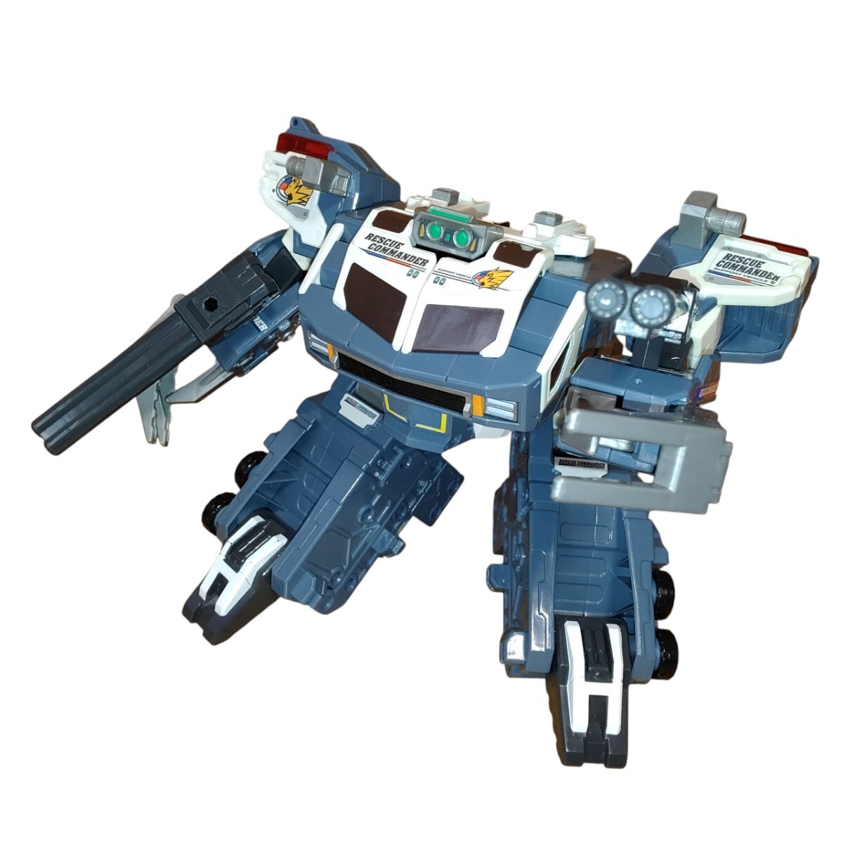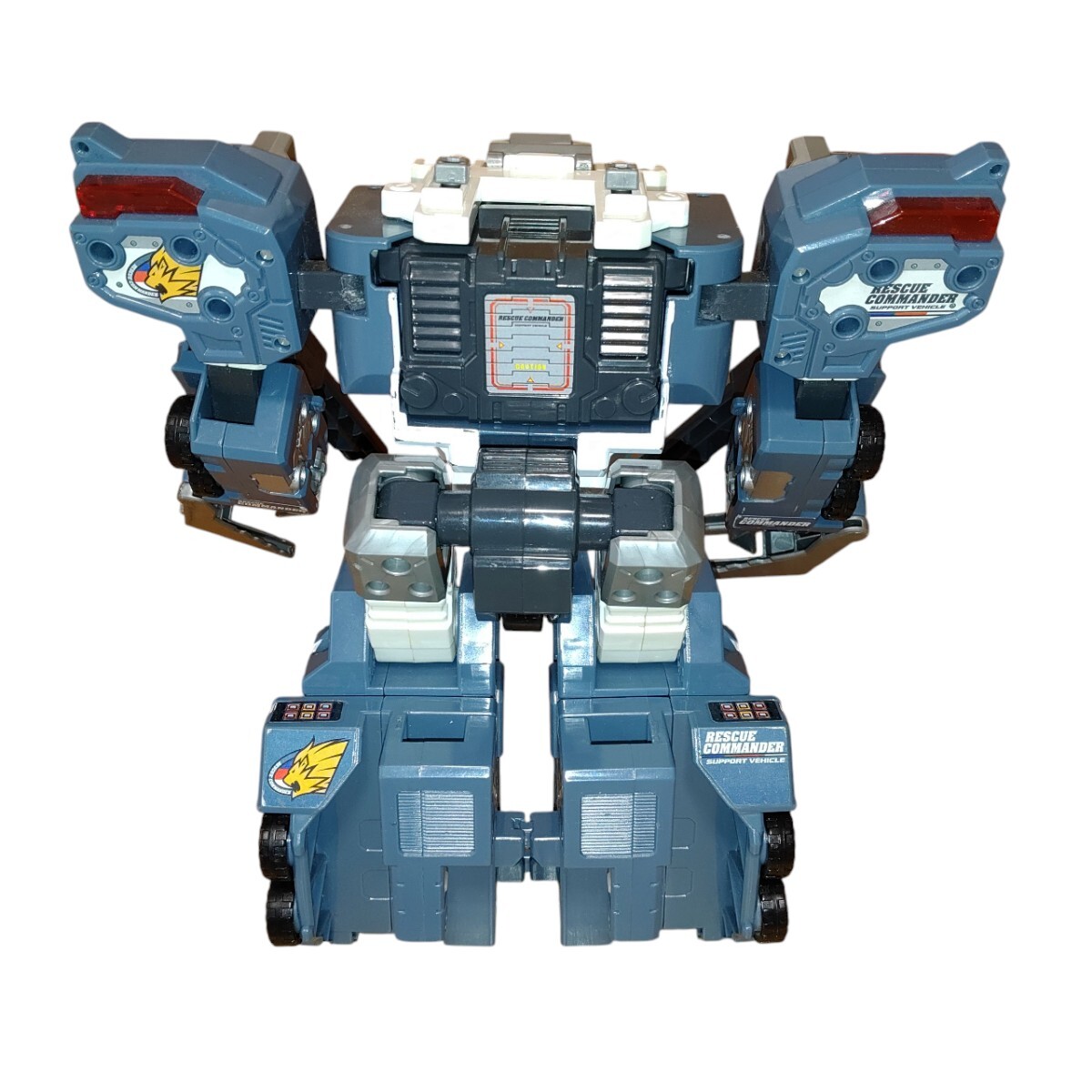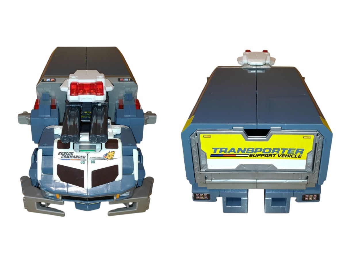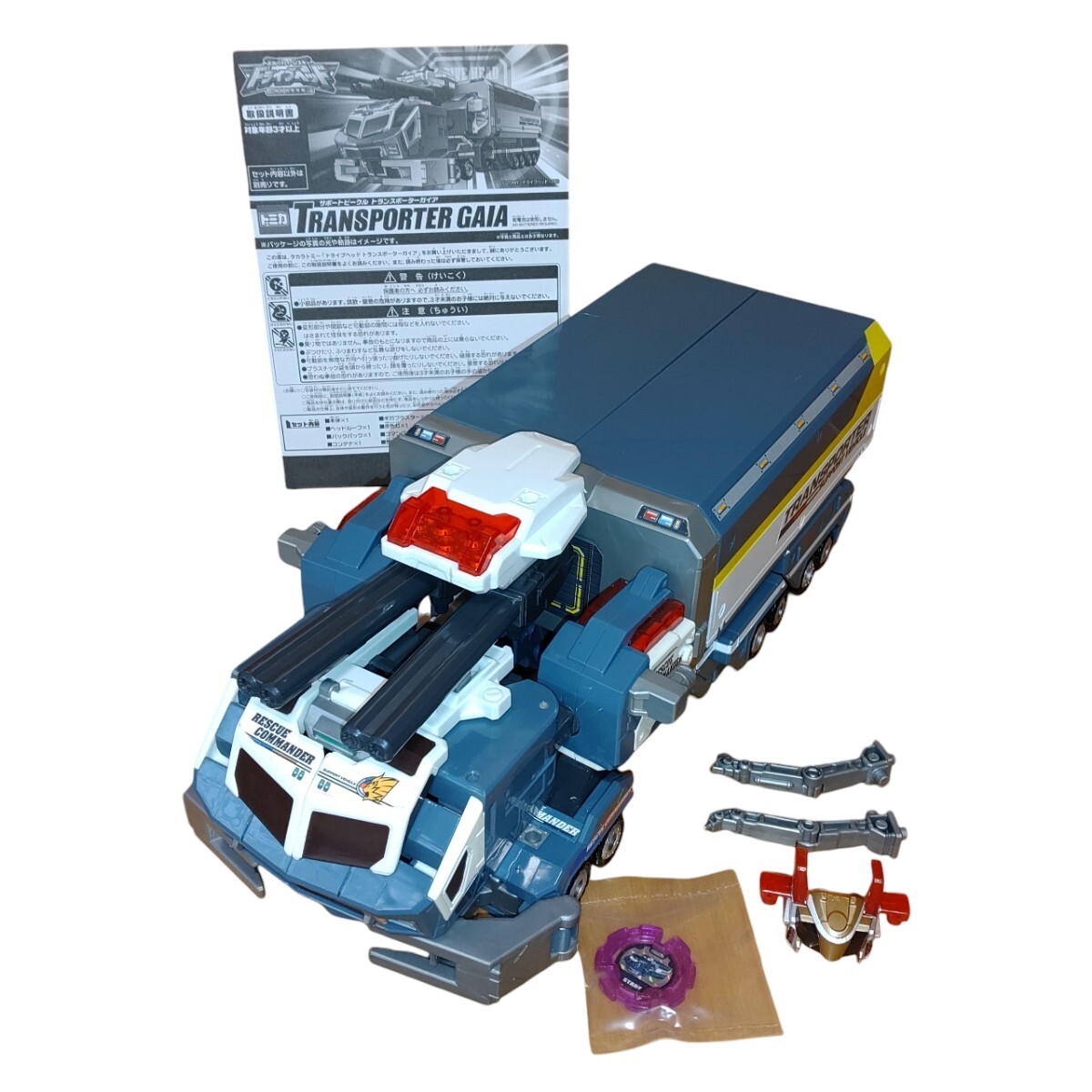 内容物は説明書やシンクロバッジ含め、全て揃った完品となります《本体、コンテナ、コマンダーヘッド、ヘッドルーフ、赤色灯、バックパック、ギガブラスター×2、整備アームA.B、シンクロバッジ、説明書、外箱、中箱》