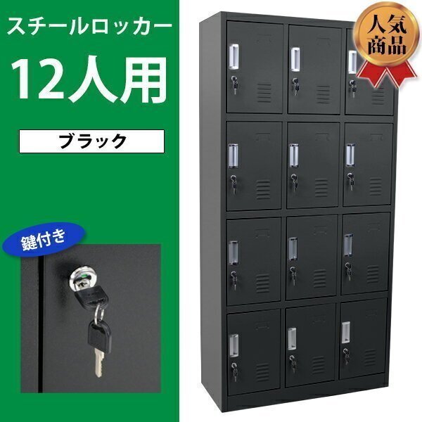 商品名 | 送料無料 ロッカー おしゃれ スチールロッカー 12人用 ブラック 鍵付き スペアキー付き 3列4段 スチール製 収納 オフィス 事務所 会社 店舗 病院 学校 業務用 スリム かぎ付き 更衣ロッカー 更衣室 オフィスロッカー スチールキャビネット 黒 10-012bk 10-012newbk |