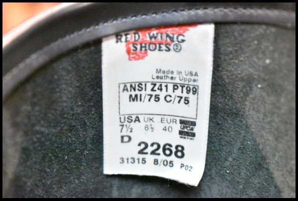 【7.5D 良品 PT99プリント 旧シルエット 05年】レッドウィング 2268 エンジニア 黒 ブラック スチールトゥ ブーツ redwing HOPESMORE