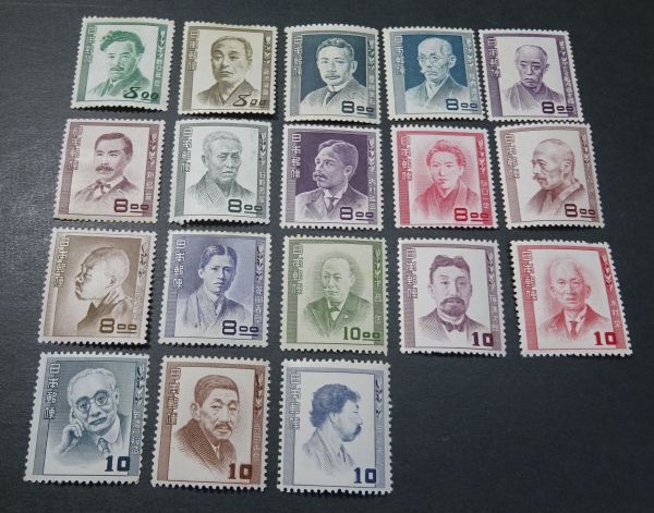 ◆商品説明◆ | ◆文化人シリーズ18種完(未使用NH・裏糊有り) ◆年代物のためヤケ・シミ・シワ等が有るものが含まれますので、画像にてご確認ください。 ◆裏面画像はミラー反転画像となります。 |