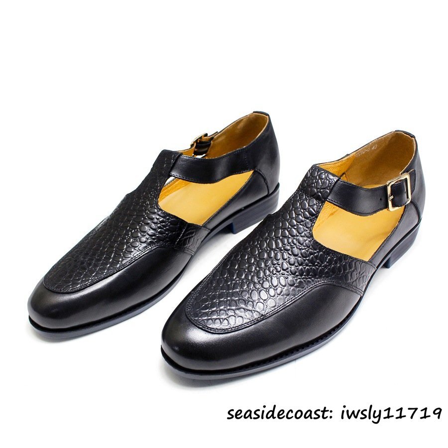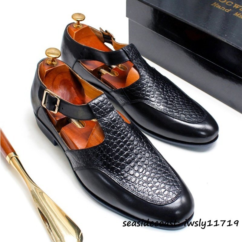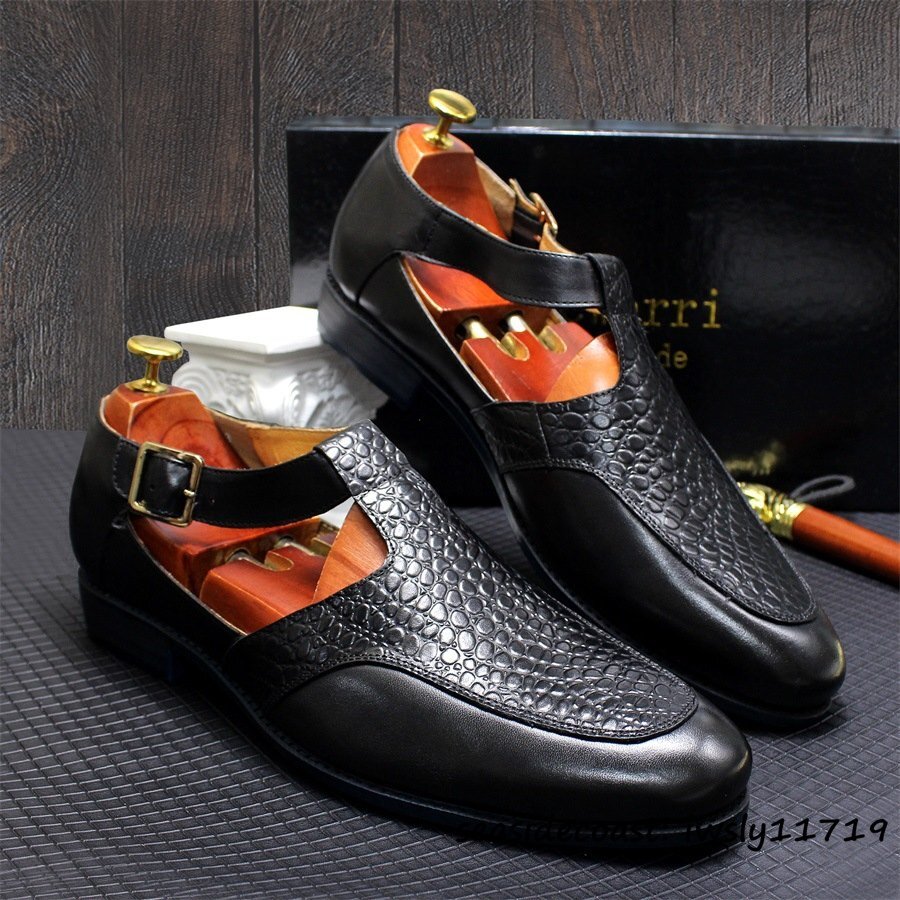 最高級◆本革サンダル メンズ レザーシューズ 職人手作り イタリアレザー ビジネスシューズ 牛革 通気性 メッシュ 革靴 パーティー 27.0cm