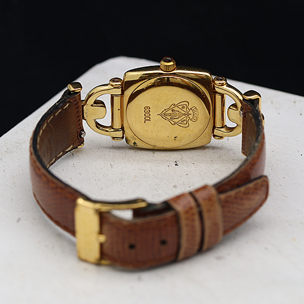 1円 稼働 グッチ ホースビット 6300L QZ ゴールド文字盤 レディース腕時計 2000000 9NSM SMZ