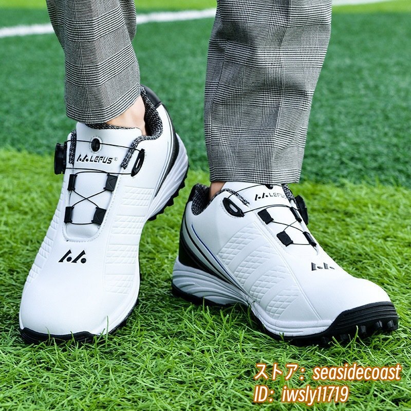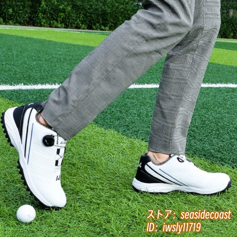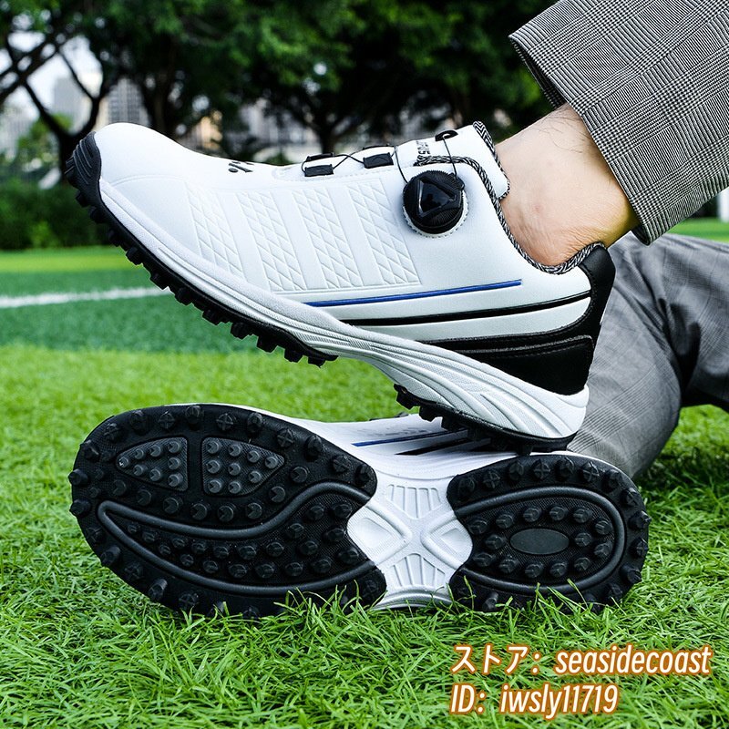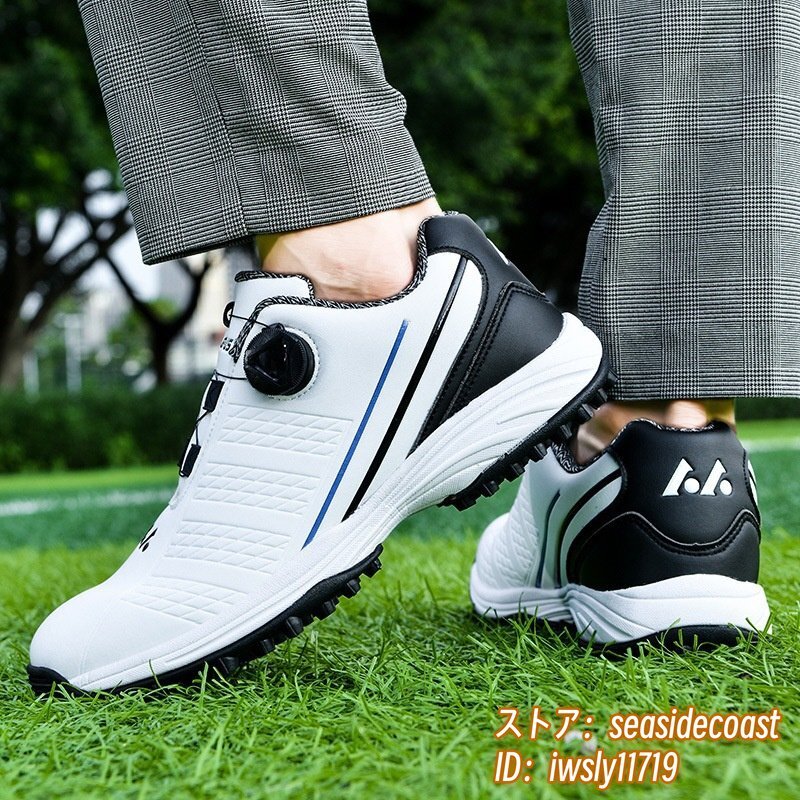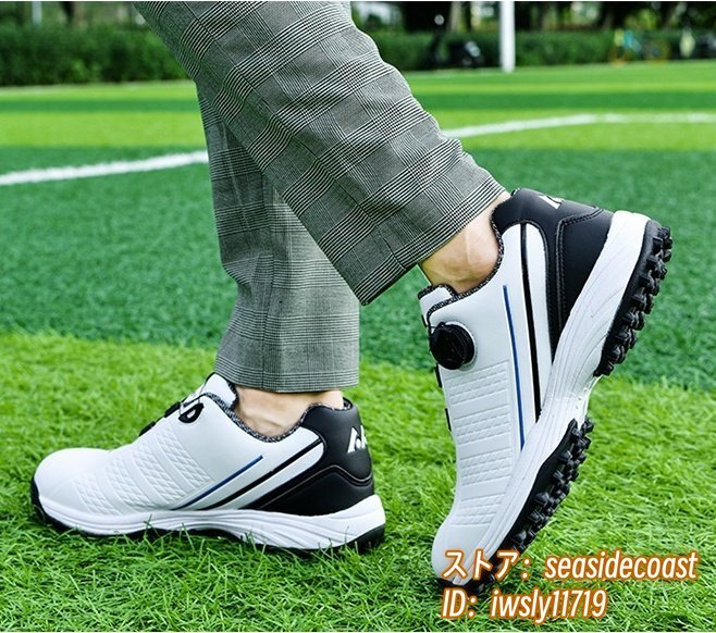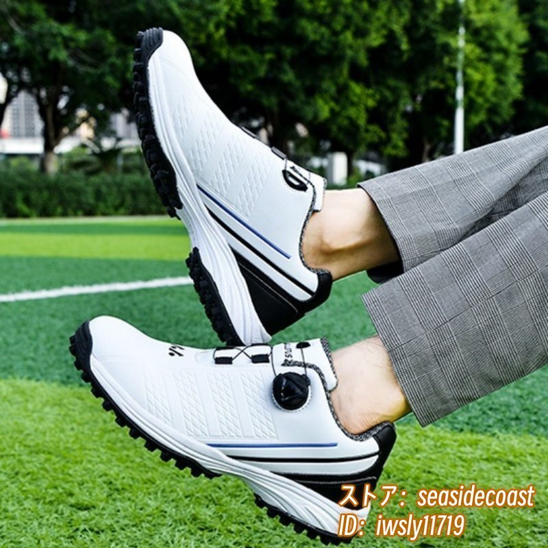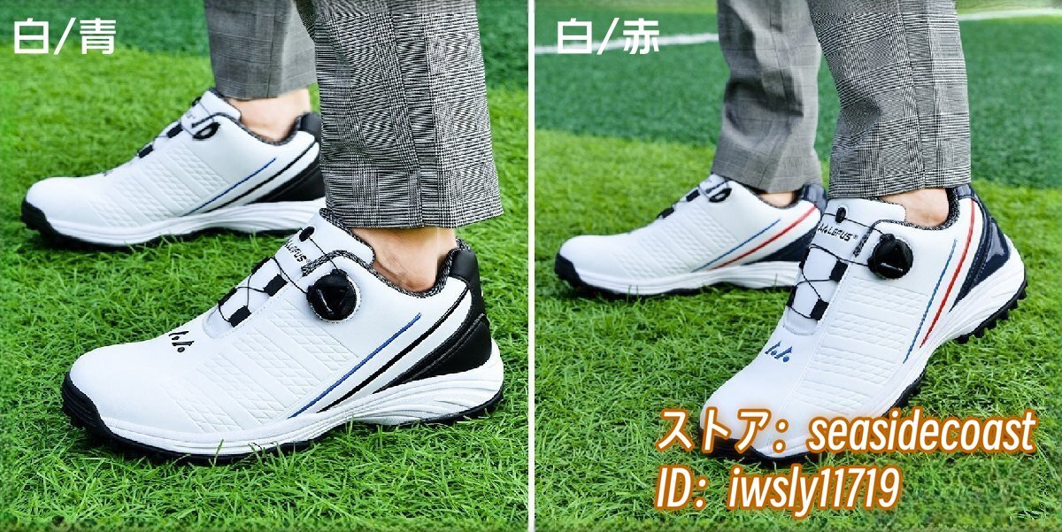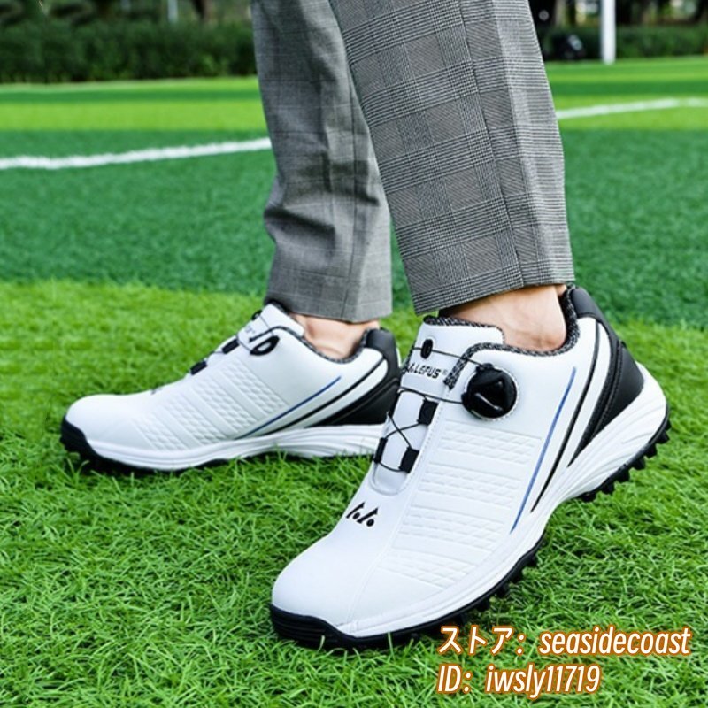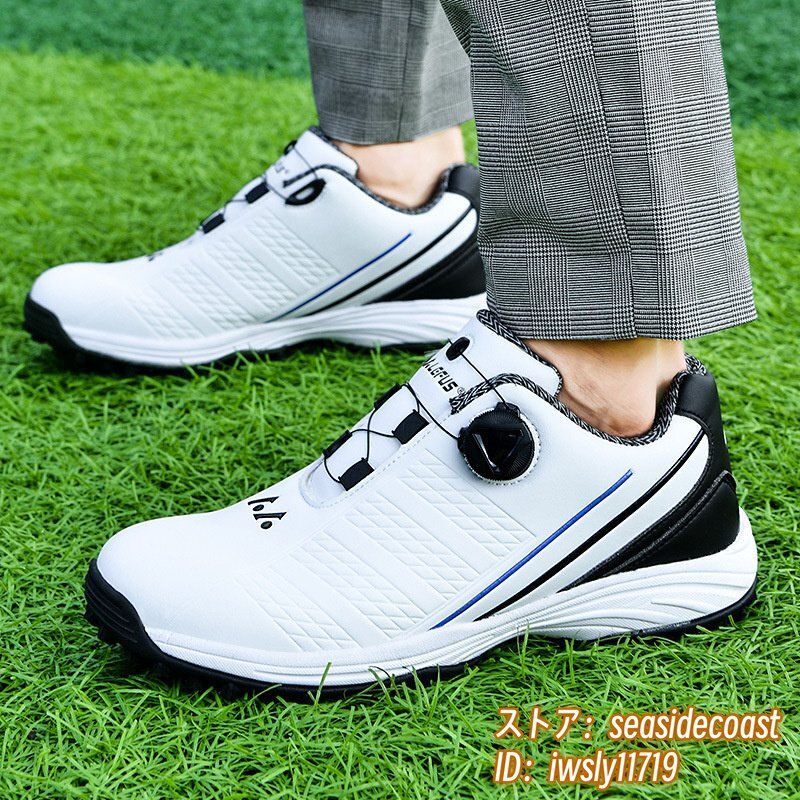 ゴルフシューズ メンズ 新品 ダイヤル式 4E 幅広い 男女兼用 フィット感 軽量 運動靴 スポーツシューズ 防水防滑 耐磨 弾力性 白*青 27.0cm