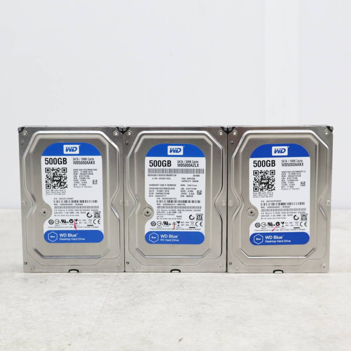 ∨ 500GB|3台まとめ 内蔵型 3.5インチ HDD ハードディスク SATA| ウェスタンデジタル|フォーマット済み ■P3504