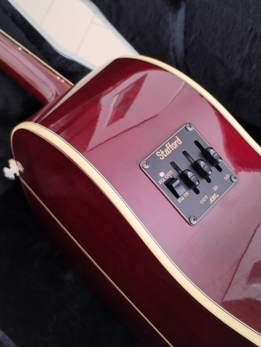 PUはStaffordオリジナルのプリアンプ付ピエゾPUです。音出し確認済みです。