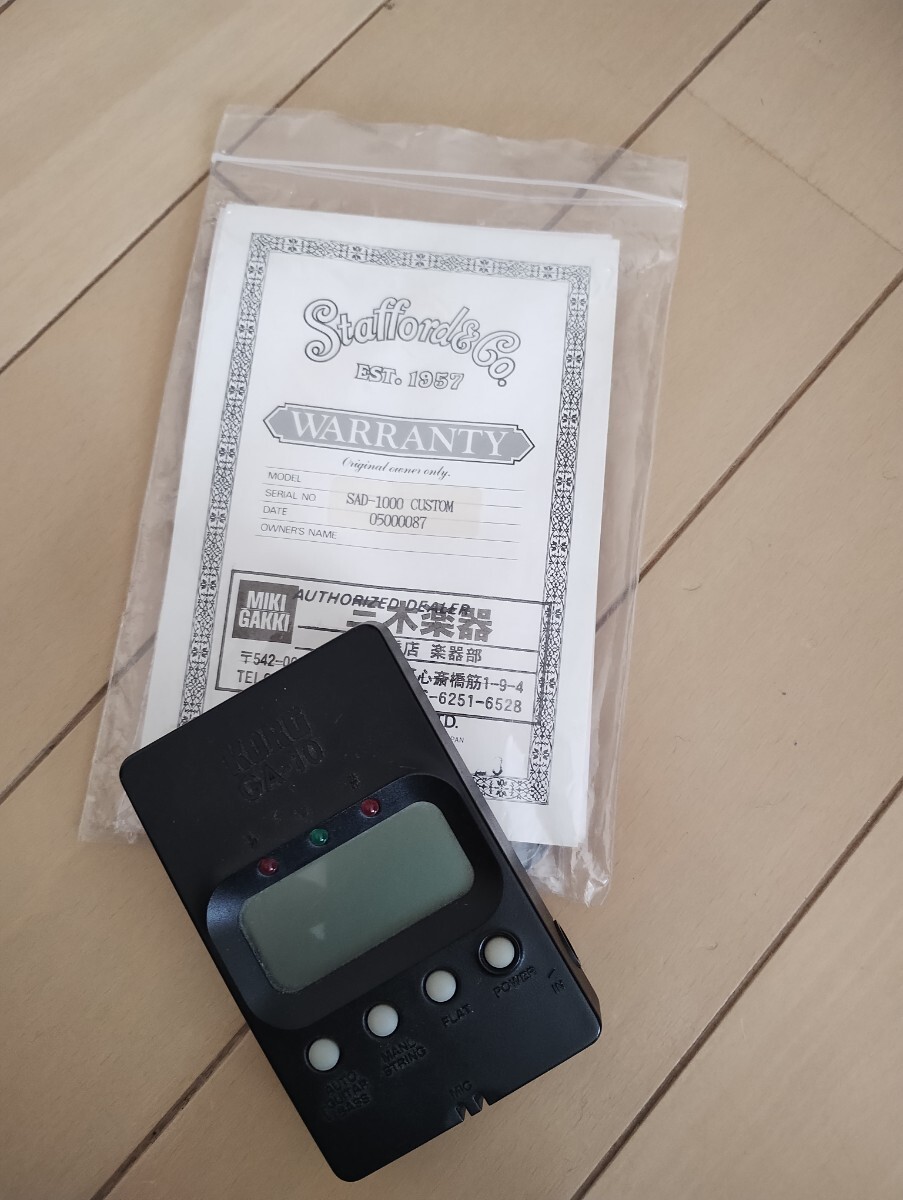 画像10にあるKORGのチューナーをお付けします。それと画像にはありませんが牛骨製ブリッヂピン6本もお付けします。