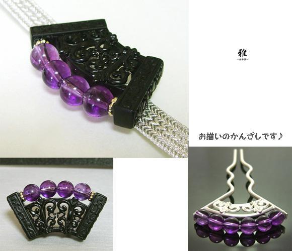 高貴な紫色の美しい天然石アメジストでとっても素敵な帯留めをお作り致しました。(*´_`*)