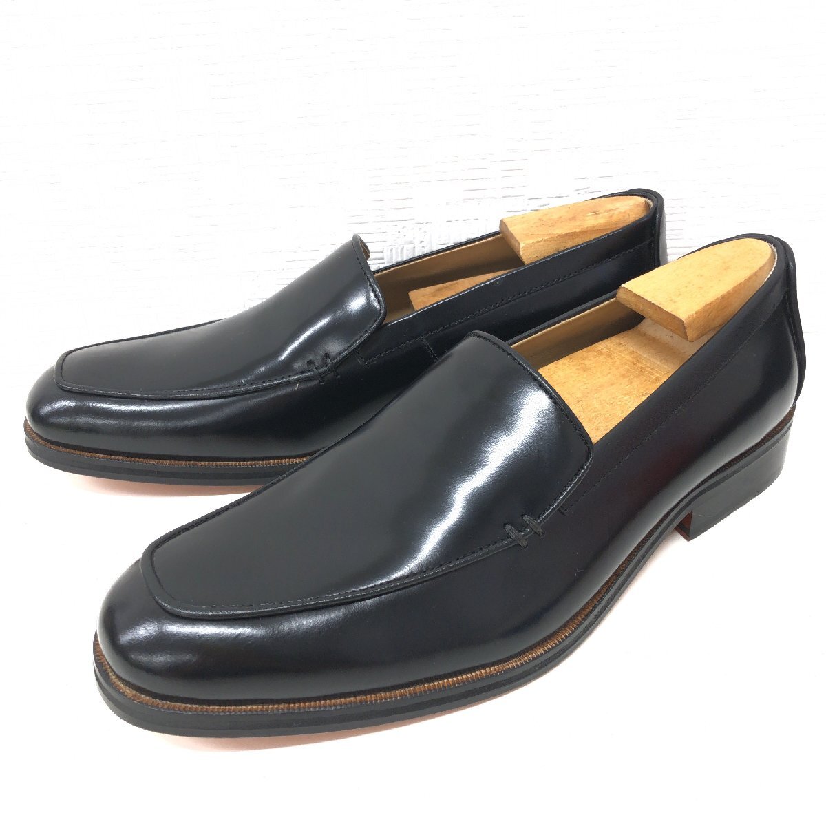 ●ほぼ未使用 Toni Rossi トニロッシ Uチップ 本革 レザー プレーンローファー 約26.5cm 黒 ブラック スリッポン レザーシューズ 革靴