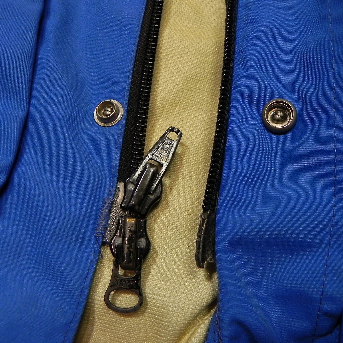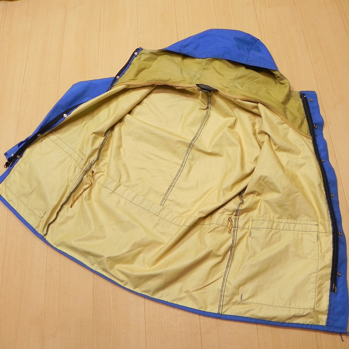 ●あくまでも古着のため、ノークレームノーリターンでお願いいたします。使用感はございますが、穴などのダメージはございません。色は青です。フロントはダブルジップです。古い物ですので、ゴアテックスの機能面についてはわかりません。
