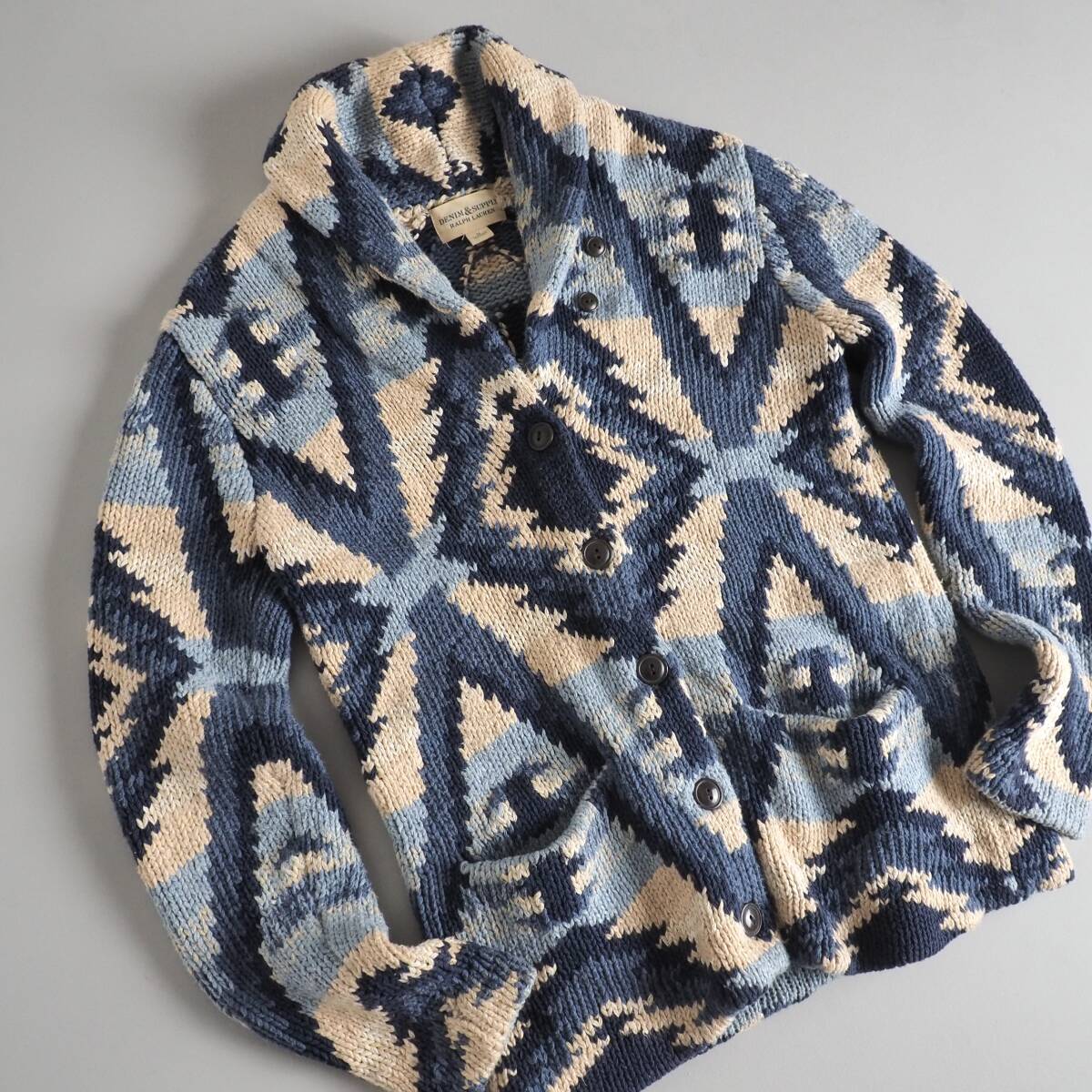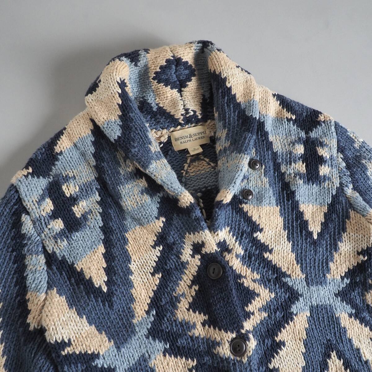 ラルフローレン Ralph Lauren カーディガン ニット ショールカラー ネイティブ柄 メンズ 美品
