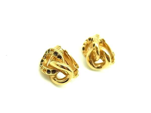 ChristianDior ディオール ヴィンテージ ラインストーン クリップ式 イヤリング アクセサリー レディース ゴールド系 DI7794
