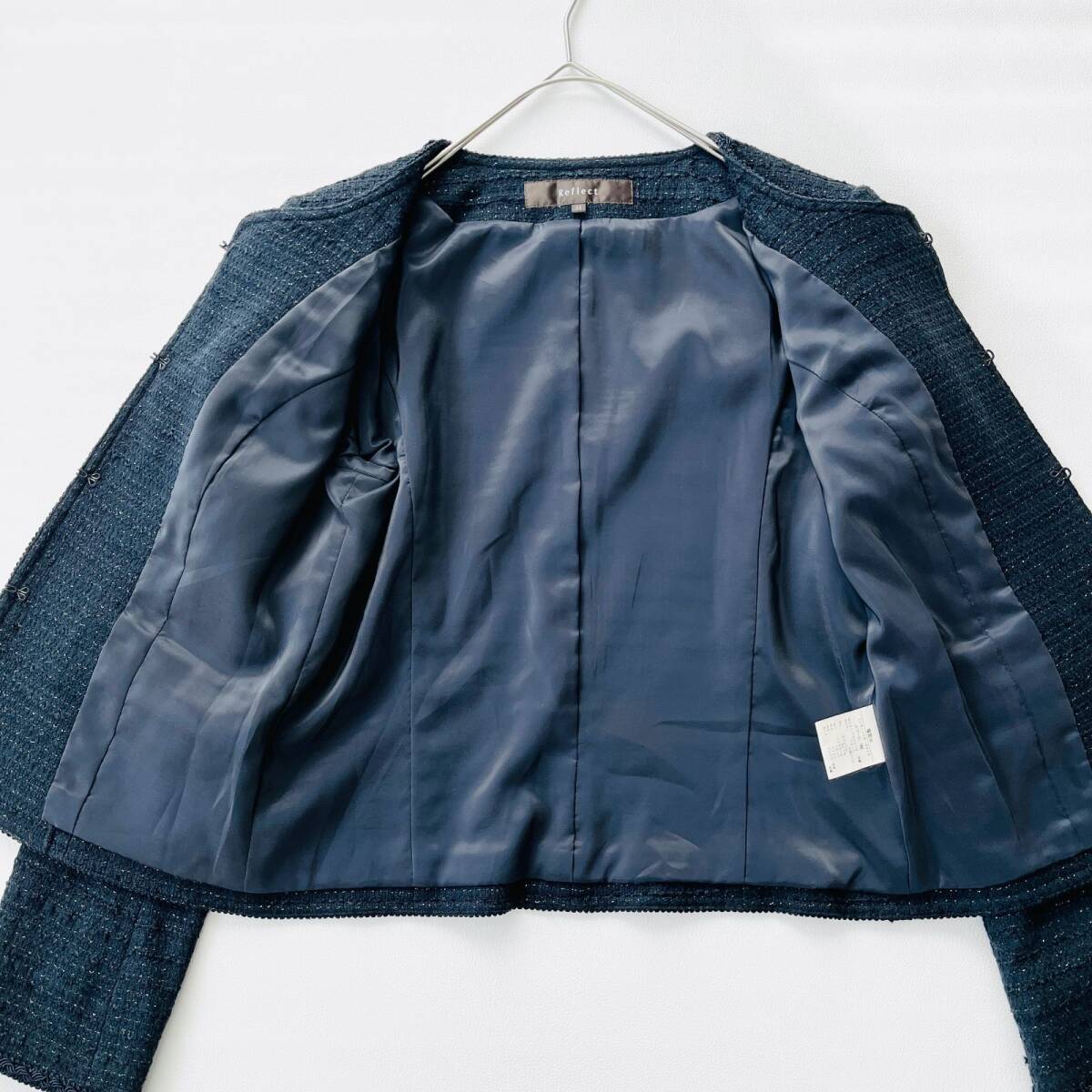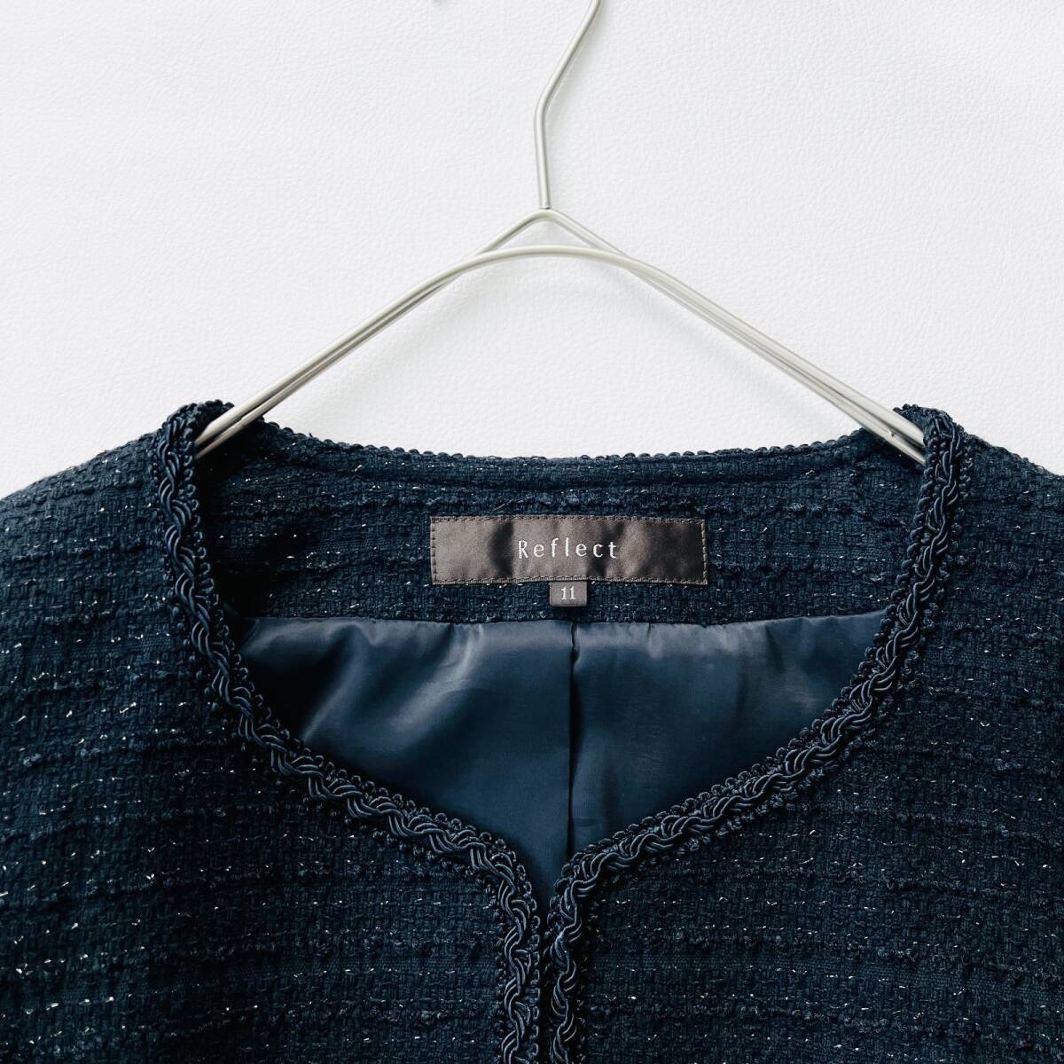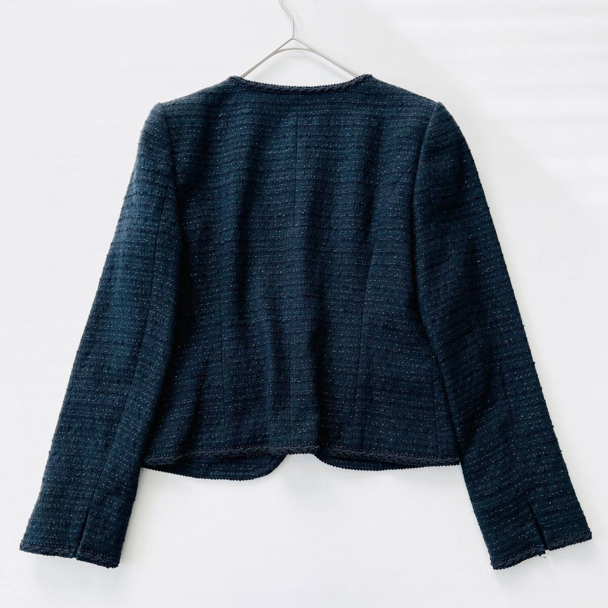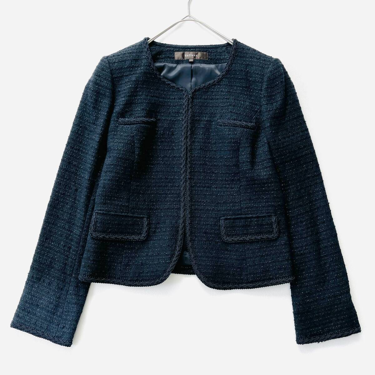 大きい11号 ツイードノーカラージャケット パンツ スーツ ビジネス セットアップ 上下 ワールド
