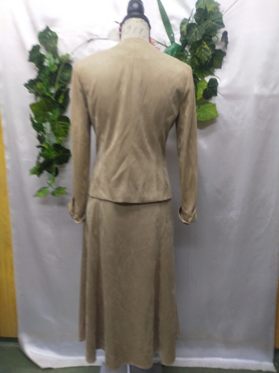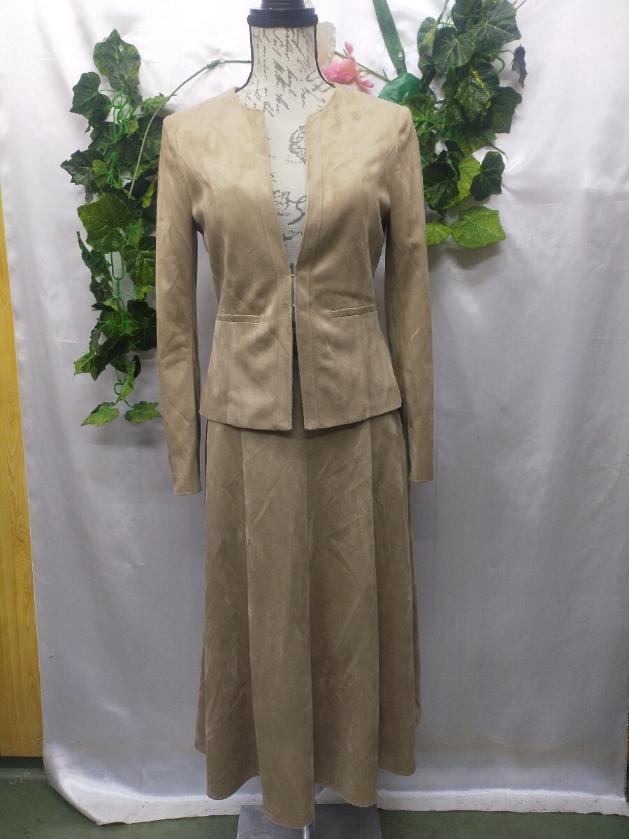 ※セットアップ スーツ上下 ジャケット ノーカラージャケット ロングスカート ストレッチ オフィス ビジネス セレモニー ベージュ ウォッシャブル