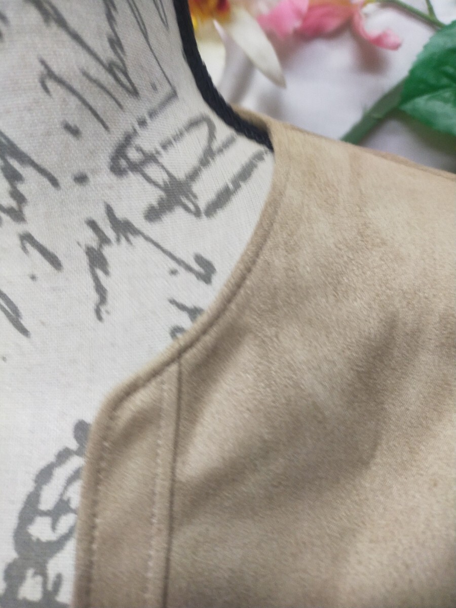 肩パットなし前はホック2個止めのノーカラージャケット。袖はスリットで折り返しできます。