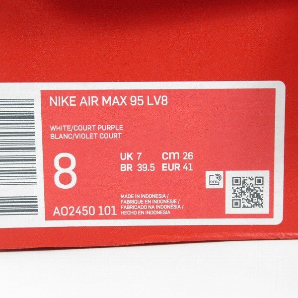 NIKE/ナイキ AIR MAX 95 LV8 GRAPE エアマックス95 グレープ AO2450-101/26 /080 | |||||||||||||||||||||||||