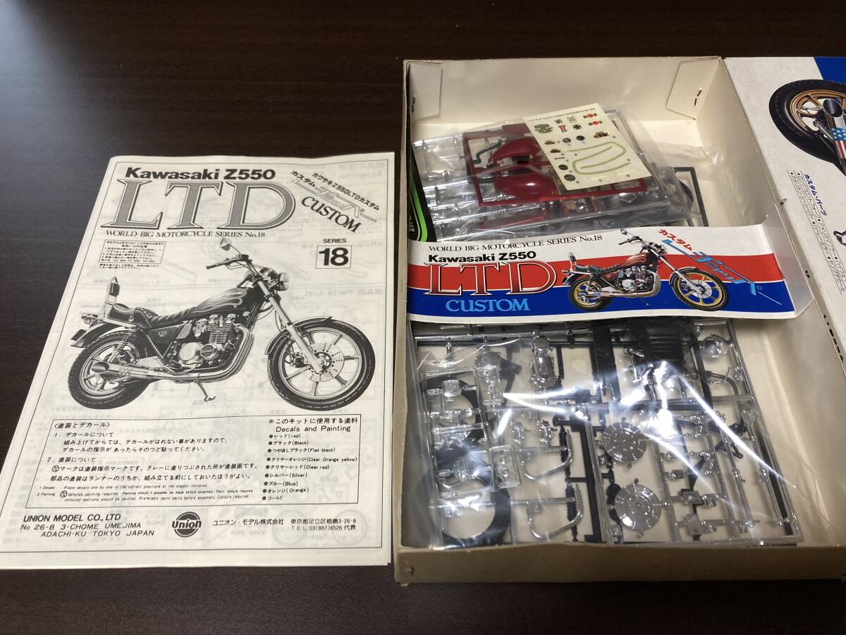 ⑯ レア 未組立プラモデル 1/15 Union カワサキ Z550 LTD カスタム ユニオン プラモデル