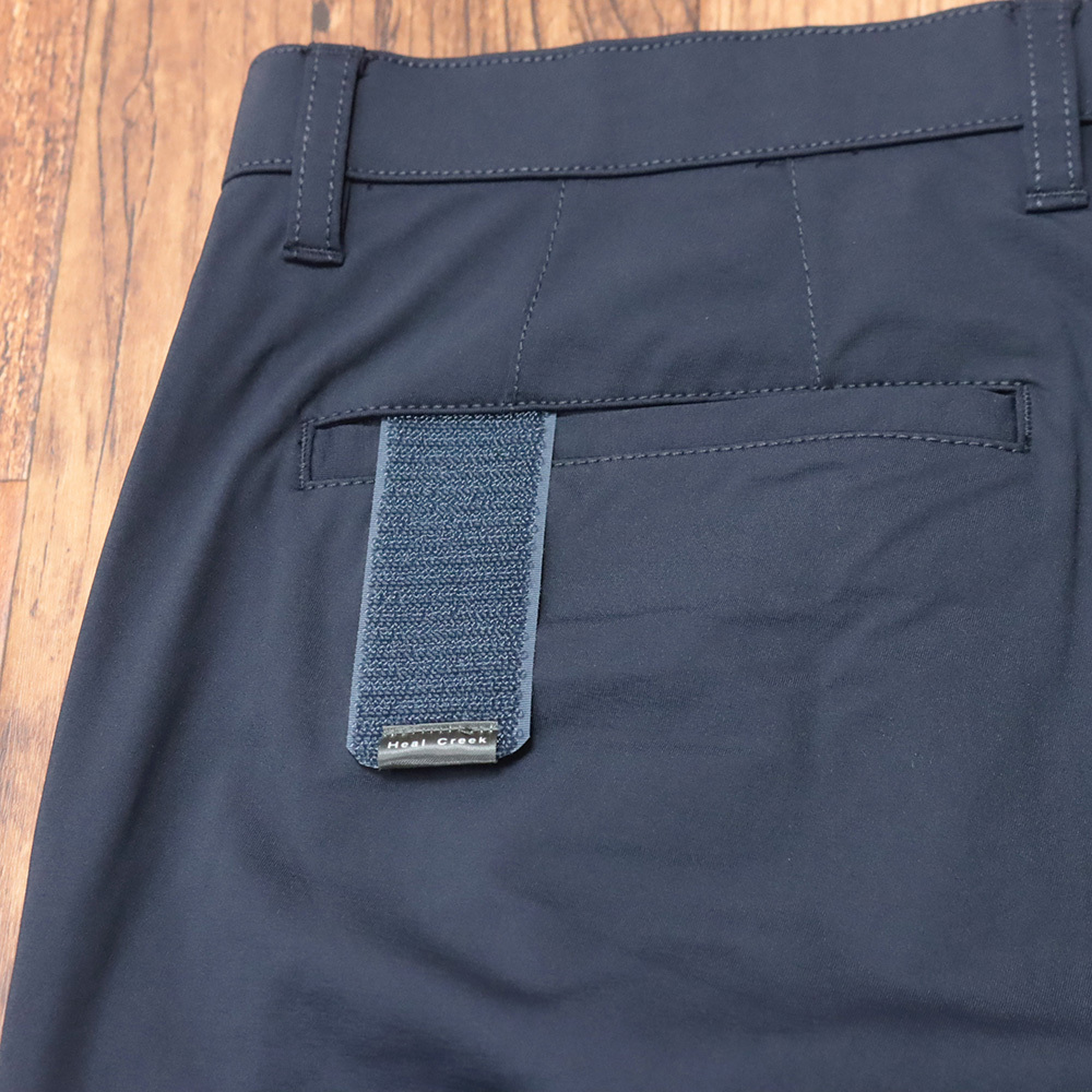 触れた瞬間伝わる冷たさが特徴の接触冷感で、ひやりと冷たくて気持ち良い。履いた瞬間が最高です。落ち感のある素材なのでシルエットも細く綺麗に見え上質感のあるパンツです。左後ろポケットにはグローブが付けられるベルクロ、右後ろポケット下にはボールが2個入るポケット付き。吸水速乾、ストレッチの機能もあり、春先から秋口にかけて長いシーズンご愛用いただけます。