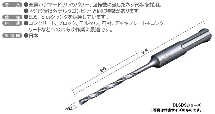 デルタゴンビットSDS-プラス ネジタイプ DLSDS040J 刃径(mm):4.0