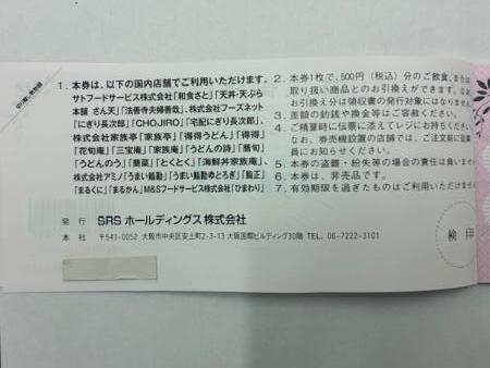 SRSホールディングス 株主優待券 1冊 (500円×24枚 12000円分)期限2025/12/31迄  ※レターパックライト送料込