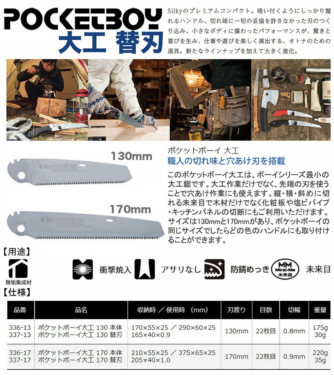 【オススメ】 〈シルキー〉 ポケットボーイ大工 130 替刃 のこぎり 折りたたみ 337-13