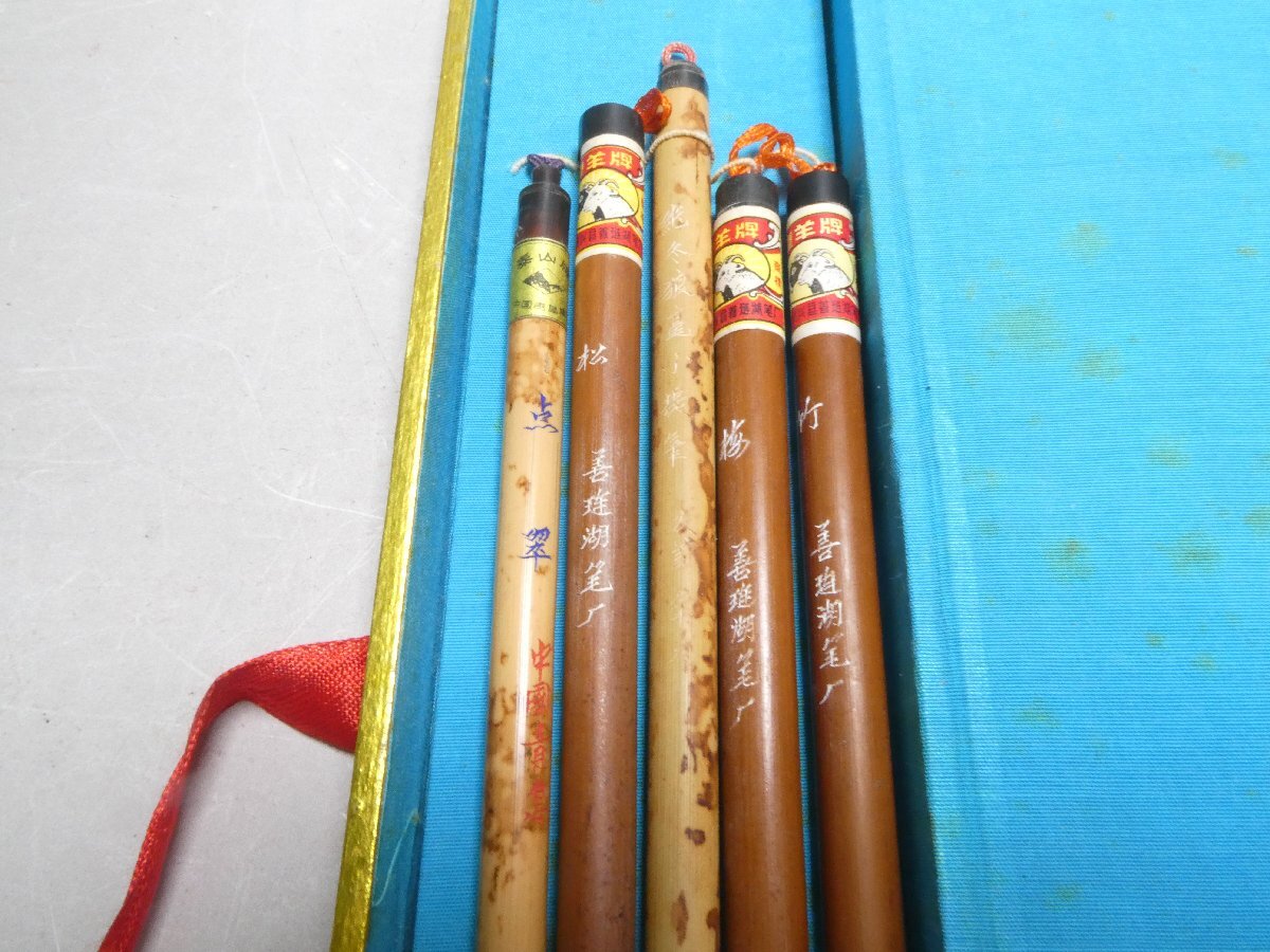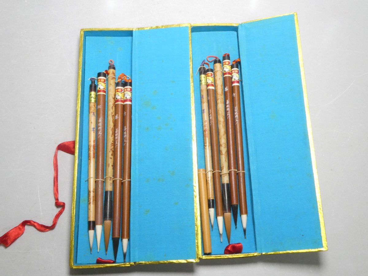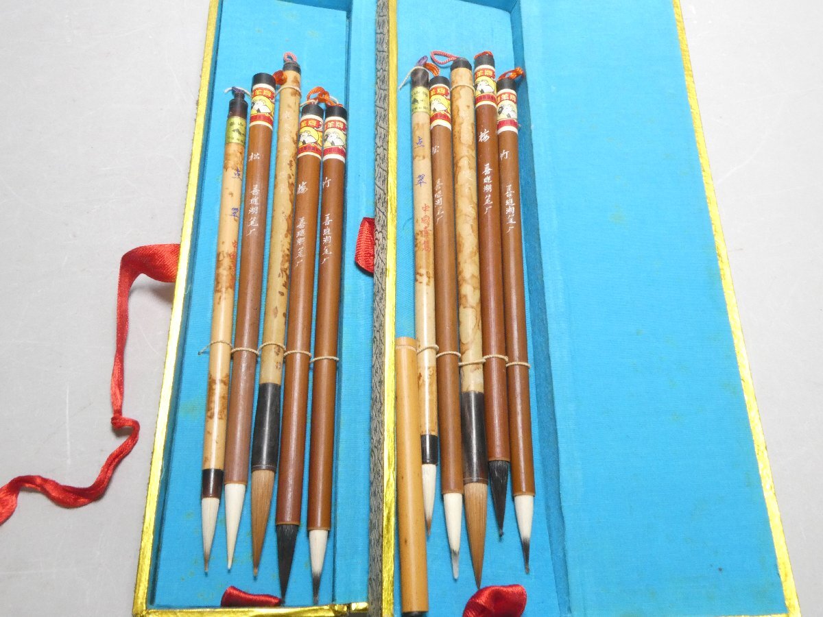 092926 中国 筆 善璉湖筆 友誼筆 中国青島 10本 ケース付 まとめて 書道具