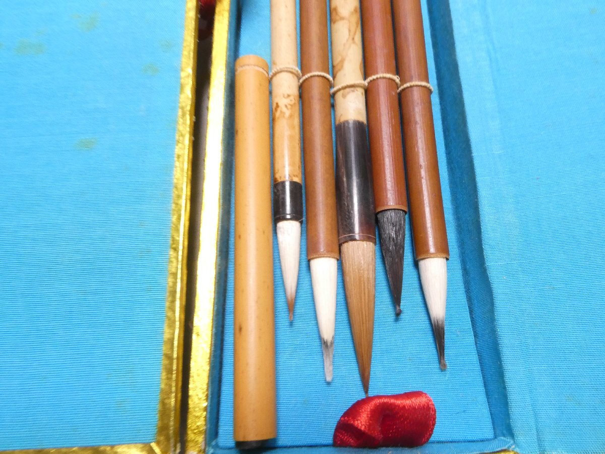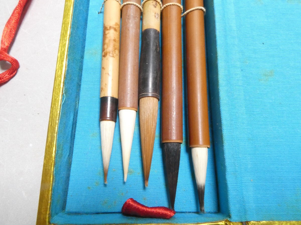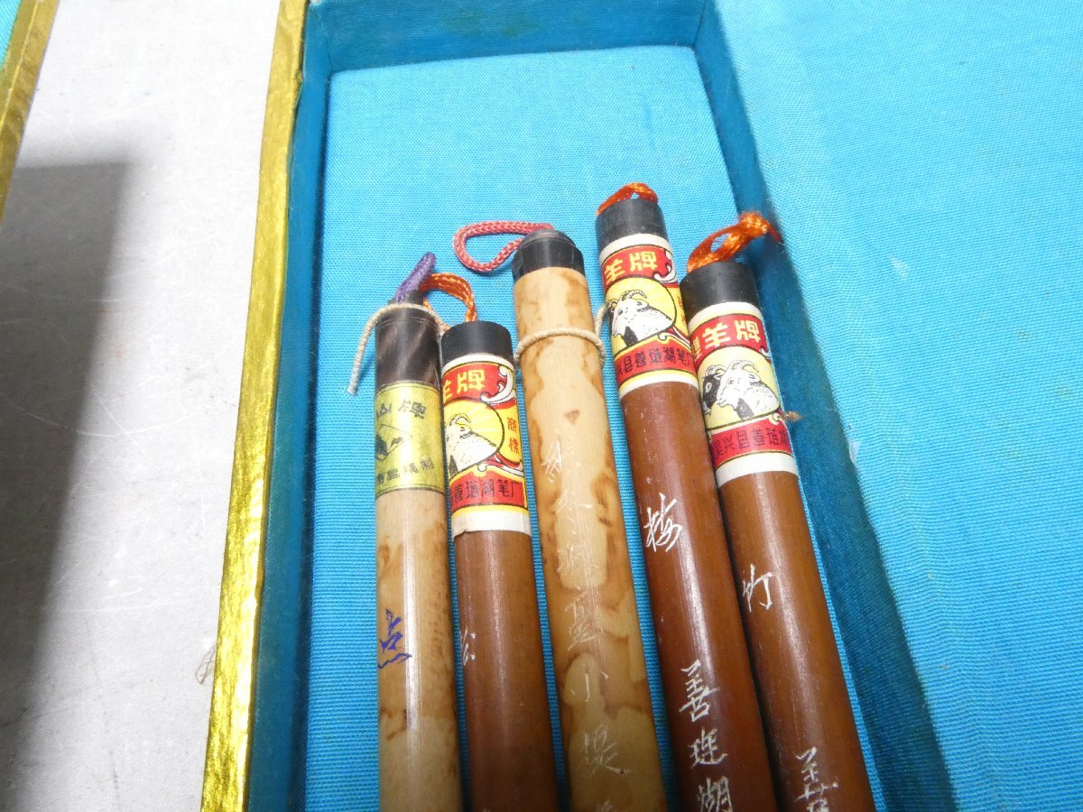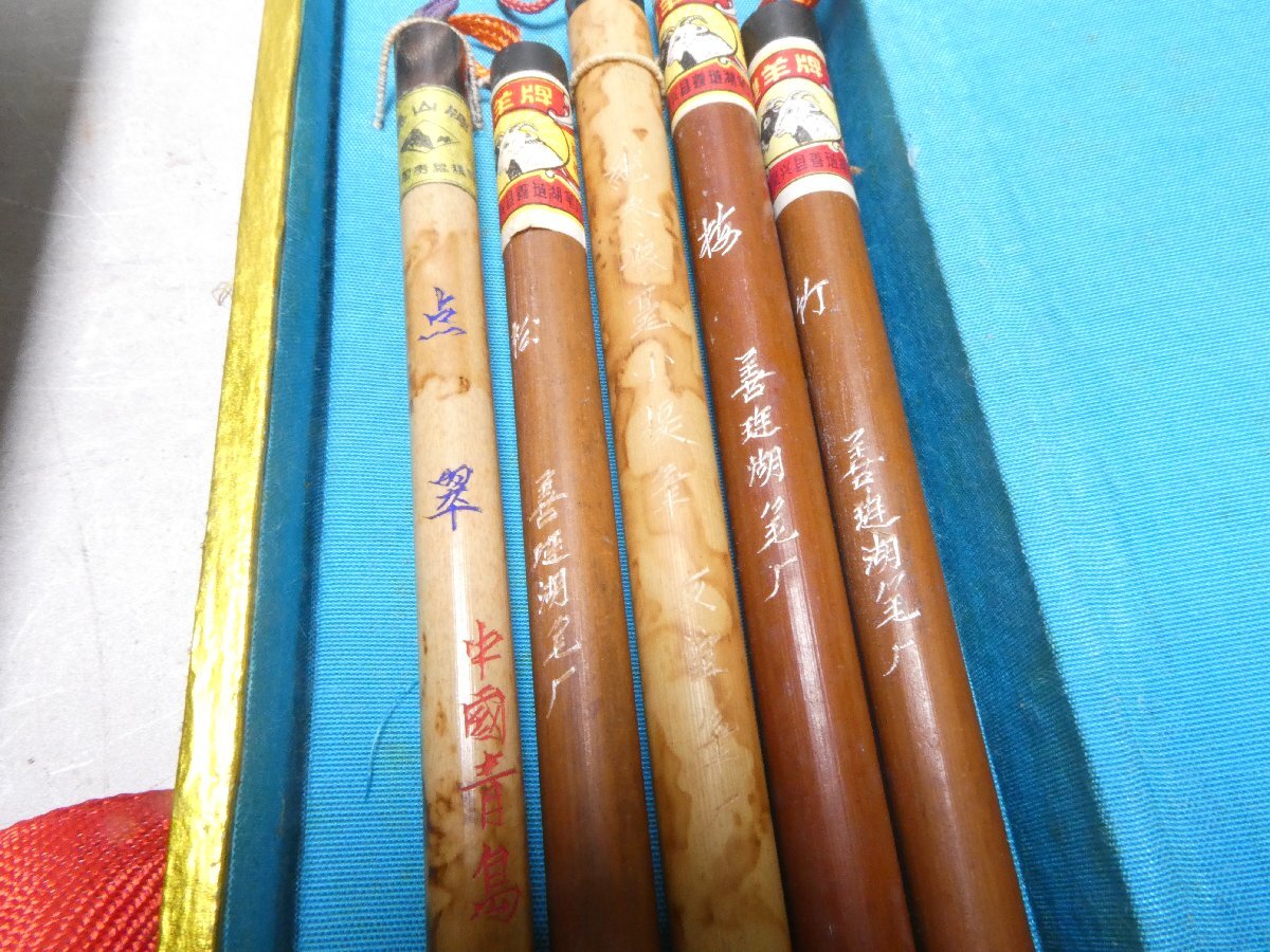 092926 中国 筆 善璉湖筆 友誼筆 中国青島 10本 ケース付 まとめて 書道具