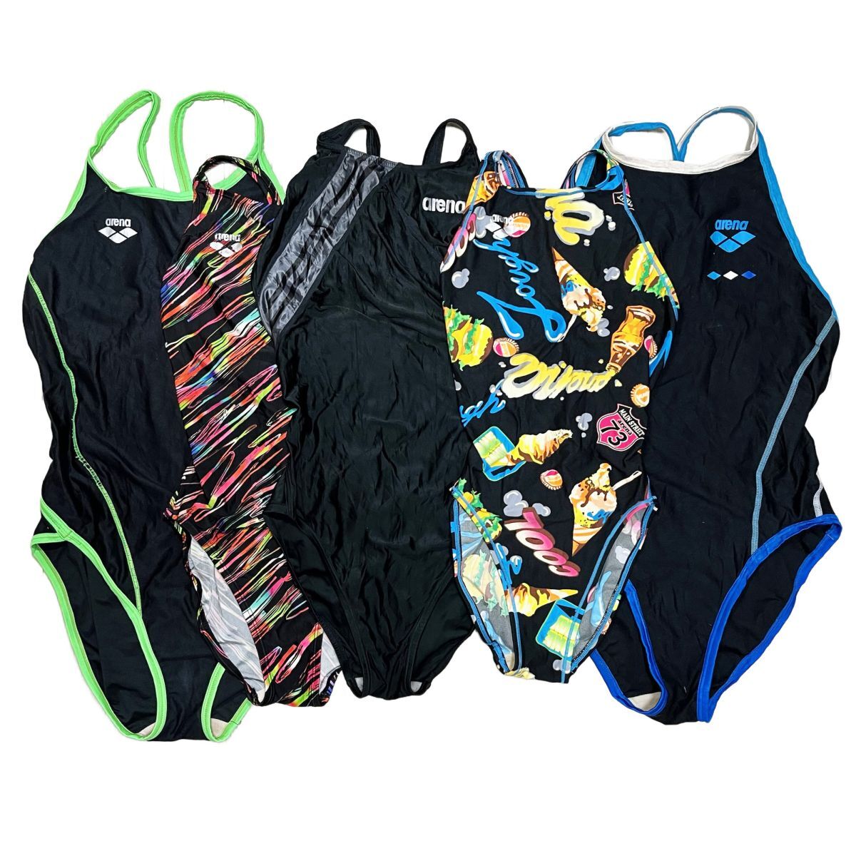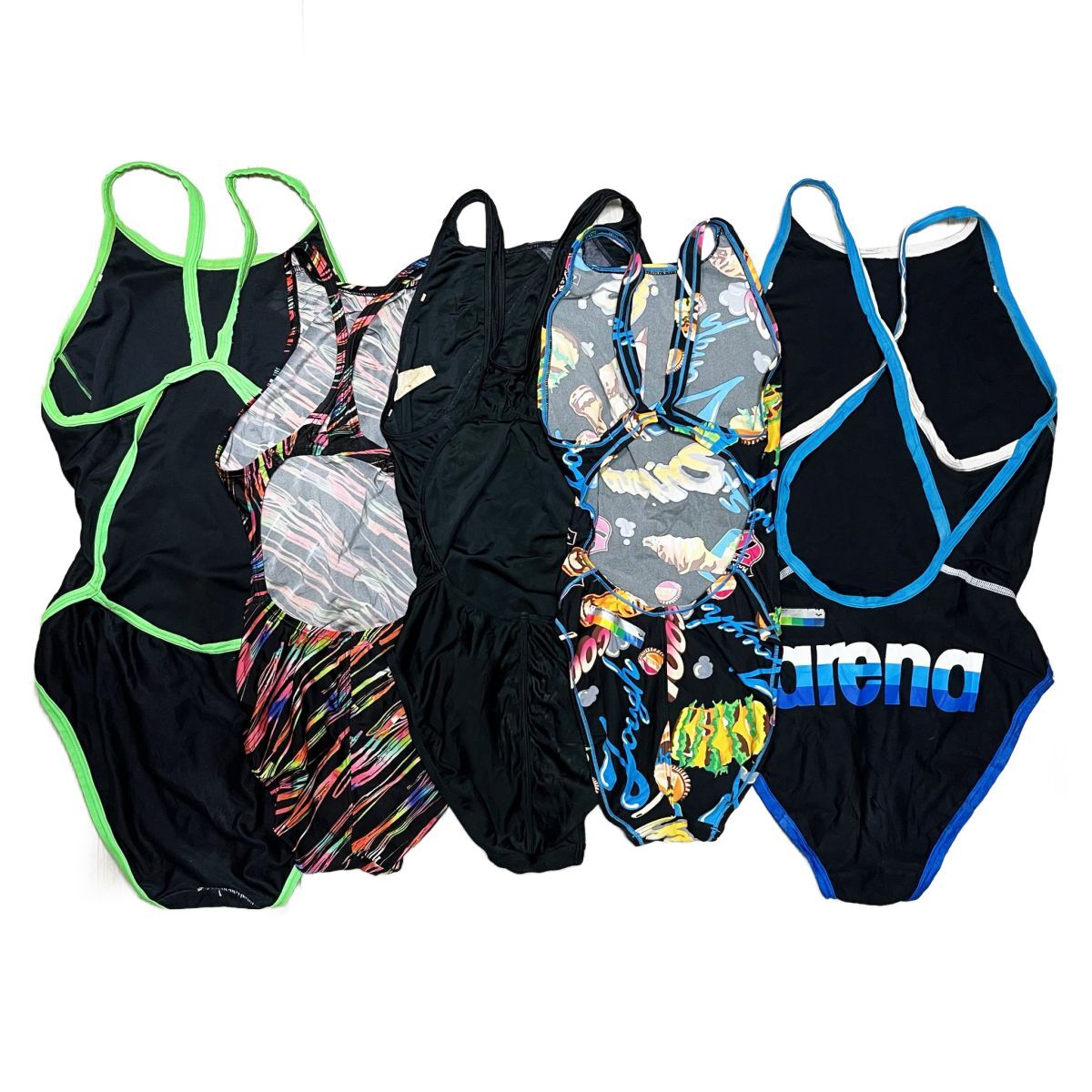 30【5枚セット】アリーナ競泳水着(SS~L)★オープンバック★タフスーツ★黒ブラック・パイピング・柄模様