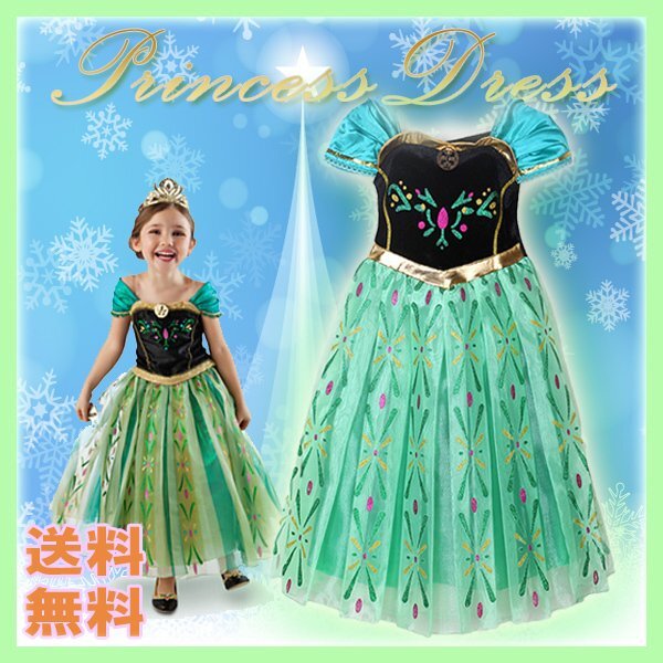 グリーン ドレス 子供用 100~140cm ディズニー 子供 キッズ お姫様コスプレハロウィン 仮装衣装 誕生日 プリンセス アナ雪 アナと雪の女王