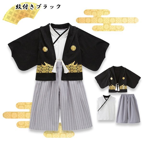 ☆子供用 袴 袴風 男の子 3点セット ※ご購入されましたらオーダーフォームに【サイズ】をご連絡ください。 カラーは紋付ブラックになります。 【サイズ】 100cm 110cm 120cm 130cm ※サイズ表は目安であり、個人差がございます。予めご了承ください。 羽織+インナー+袴風ズボンの3点セット。 生地が柔らかく着心地がよくとても良く動きやすいので、元気な男の子にピッタリ! 端午の節句や七五三、冠婚葬祭など様々な場面で活躍します。 【商品名】 子供用 袴 袴風 男の子 3点 セット 【サイズ】 100cm 110cm 120cm 130cm 【カラー】 ・紋付ブラック 【素材】 本体:綿100% サテン部分:ポリエステル100% ( セットアップ 袴風 子供服 男児 紋付袴 黒紋付羽織 男の子 フォーマル 子供服 衣装 節句 紋付 和風 和服 ベビー用品 コスプレ かっこいい ) |