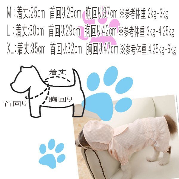 帽子付き 着脱簡単。全身保護、雨の日も楽しくお散歩!リードを通す穴もあります。