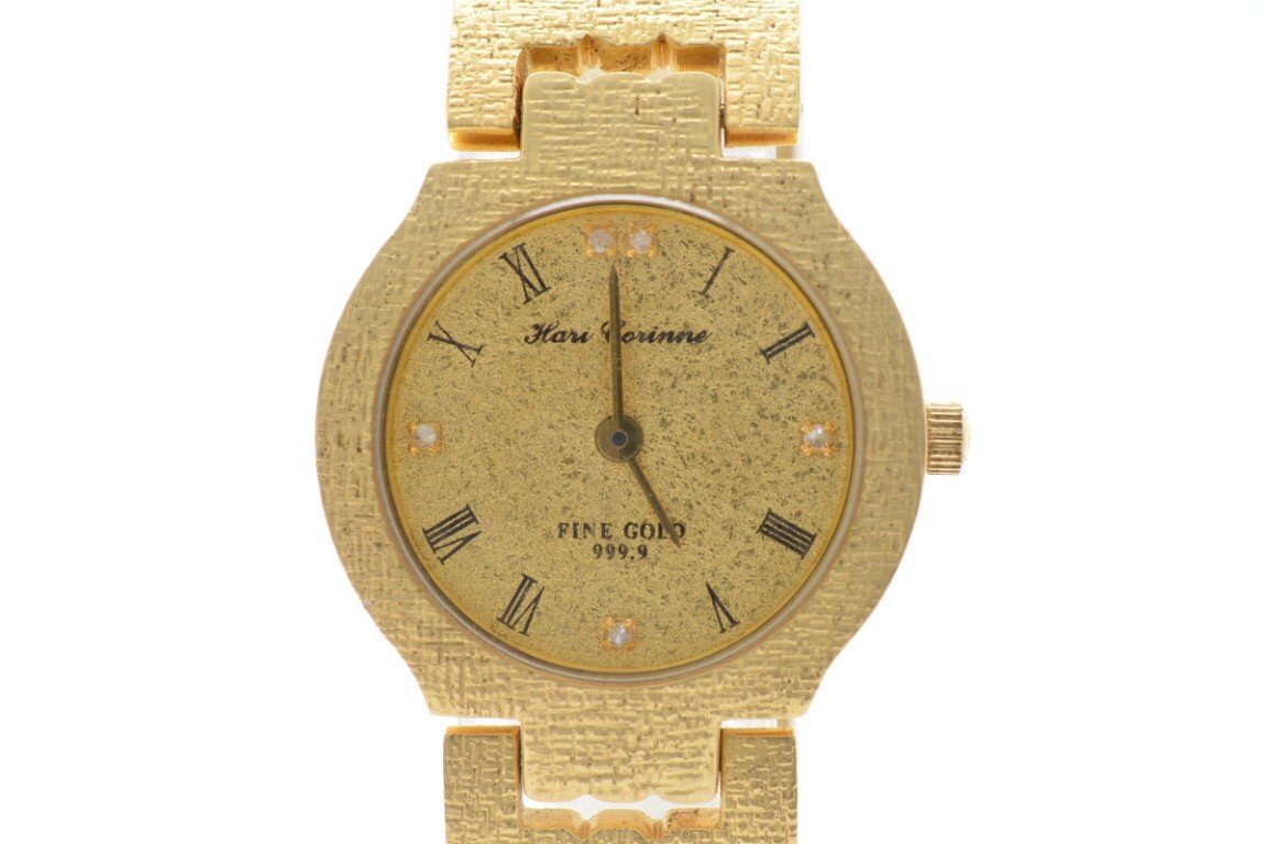 石付き ハリーコリンヌ ラウンド ゴールド クォーツ レディース 腕時計 Hari Corinne