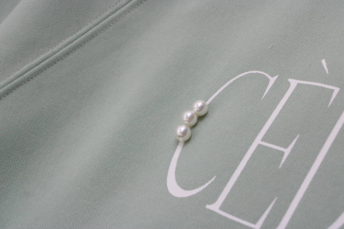 4586 新品 軽量ボンディングラグランパールロゴプリントプルオーバー ミントFサイズ