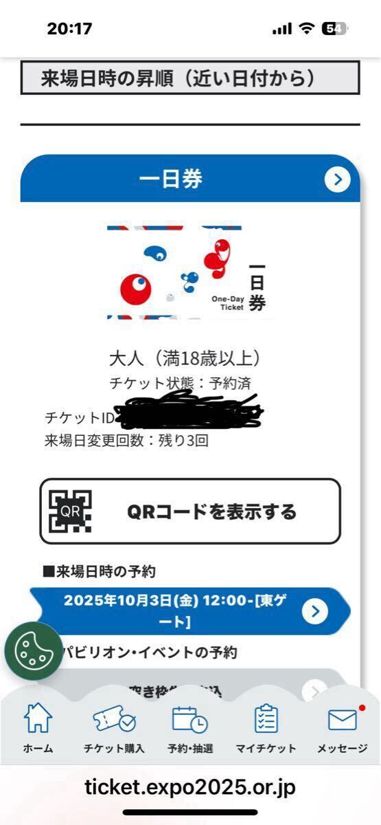 既に入場予約を済ませていますが、来場日を残り3回変更が可能です