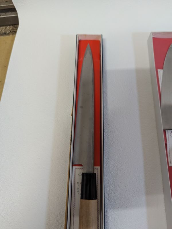 ・刃にわずかな曇りや小傷が見られますが研ぎで直る程度だと思います。