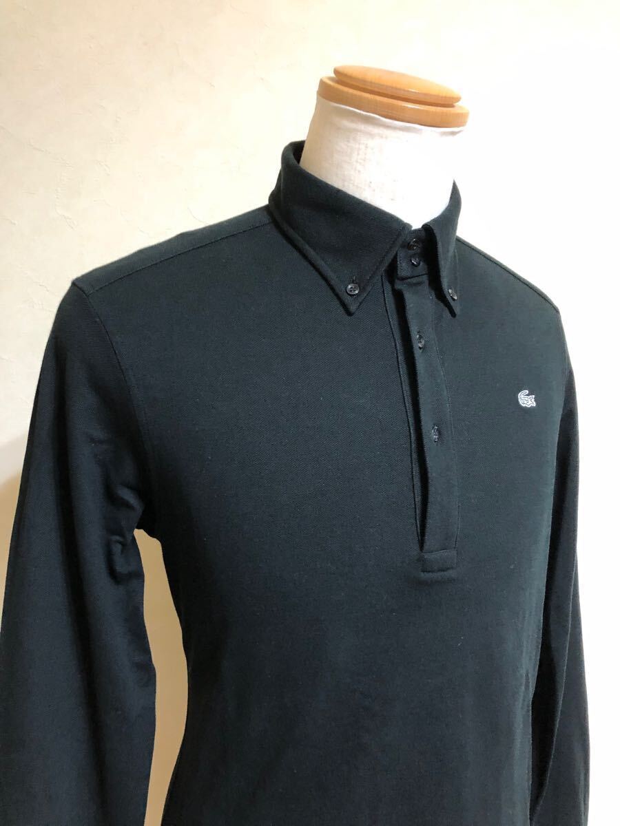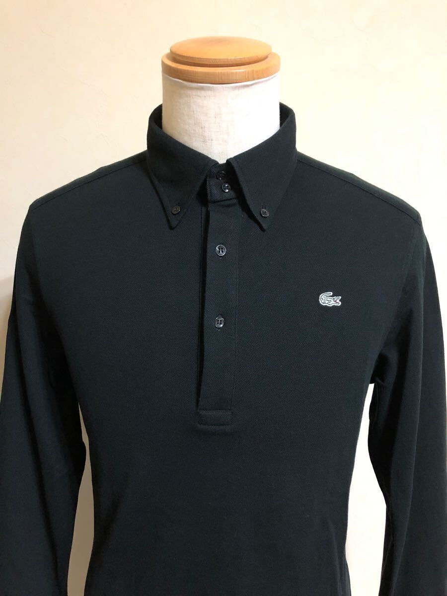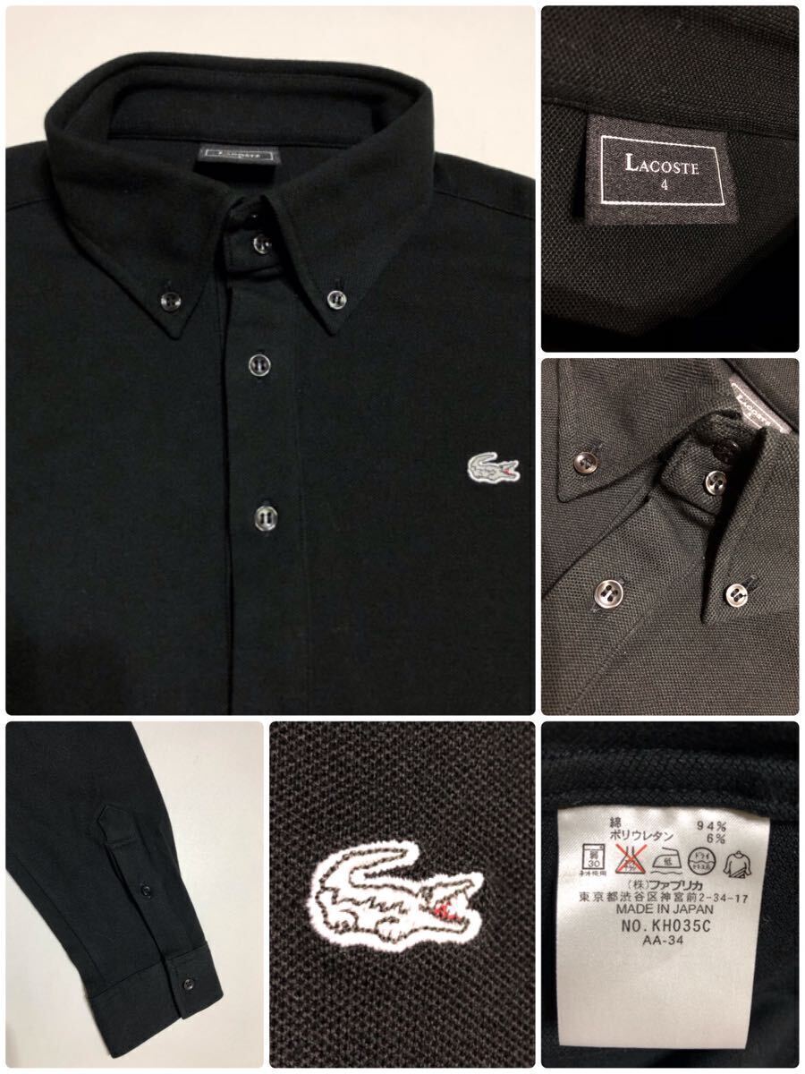 LACOSTE ラコステ ボタンダウン 鹿の子 ポロシャツ トップス 銀ワニ サイズ4 長袖 黒 日本製 KH035C