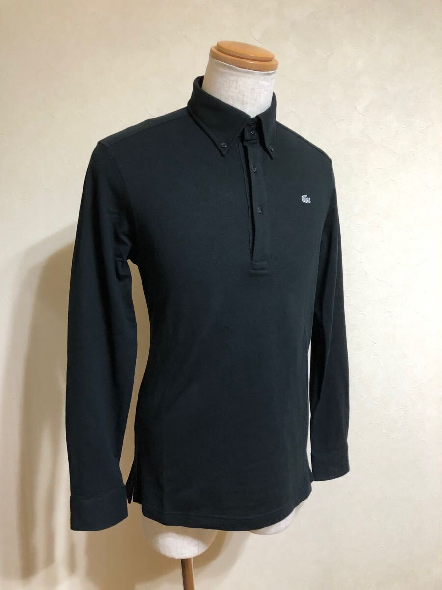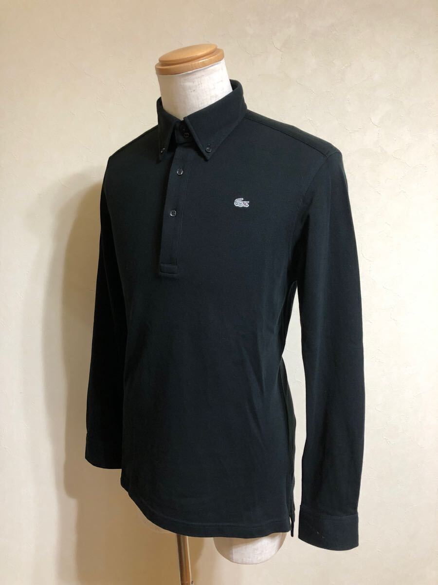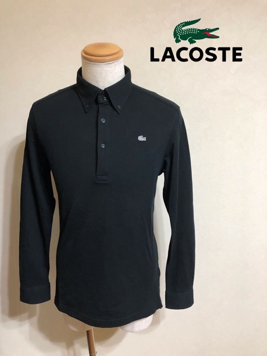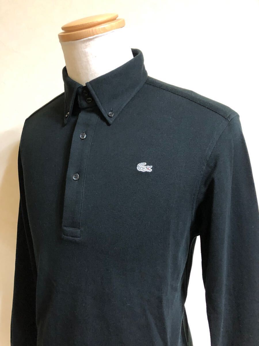 LACOSTE ラコステ ボタンダウン 鹿の子 ポロシャツ トップス 銀ワニ サイズ4 長袖 黒 日本製 KH035C