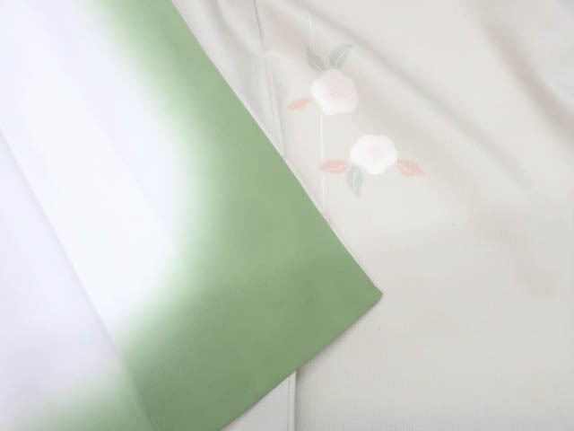 リサイクル商品のため、背や胴裏など全体的にシミがございます。 地色は白緑です。 1枚目の画像が近いお色かと思われます。 素材はポリエステルです。 |