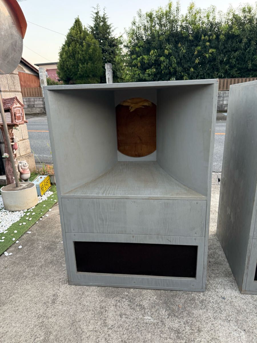 エンクロージャーは不明で、このスピーカーが本物かどうかはわかりません。しかし、非常に重く、音質はとても良いです。古い商品なので傷や汚れがあります。非常に重いため、慎重に梱包して西濃運輸で発送します。沖縄と北海道は追加料金が発生します。