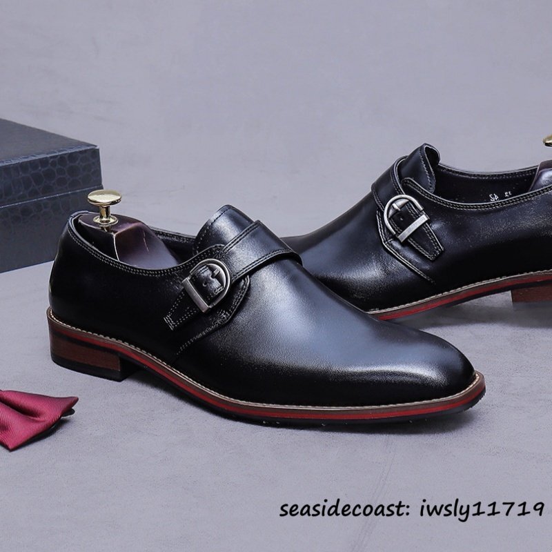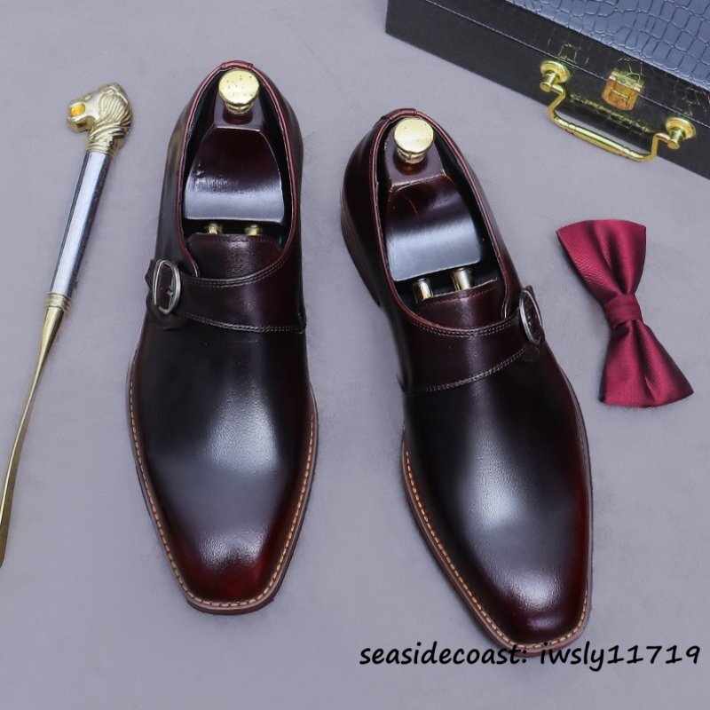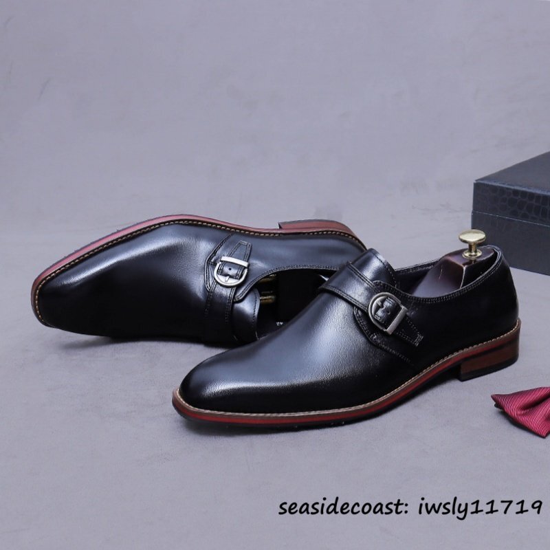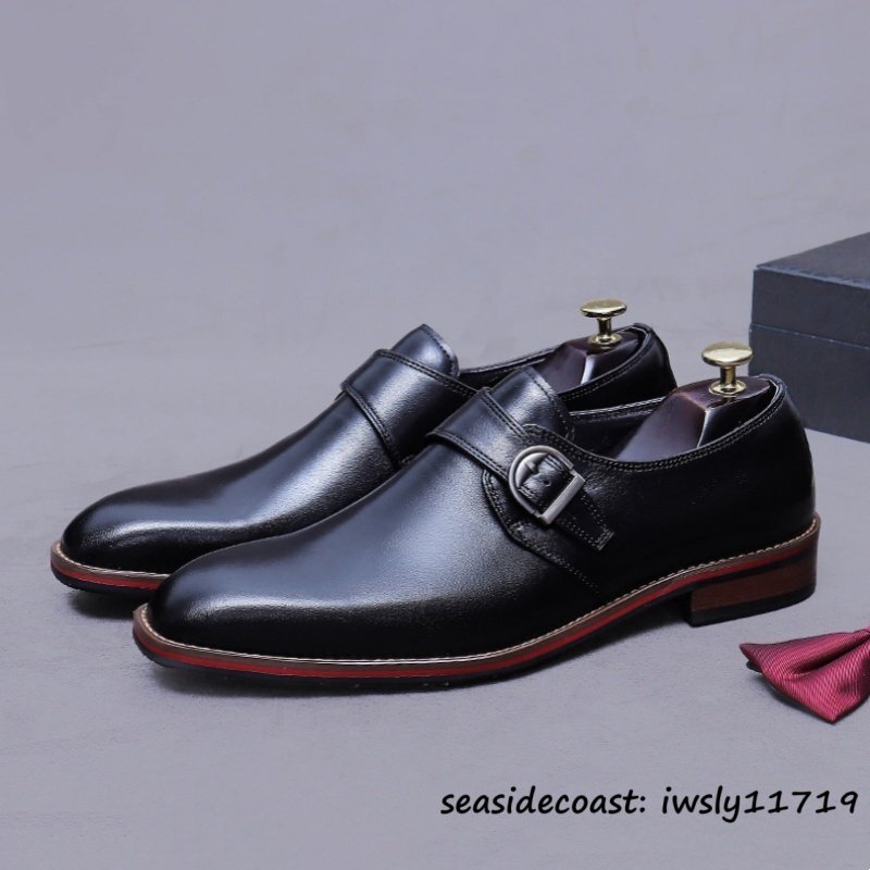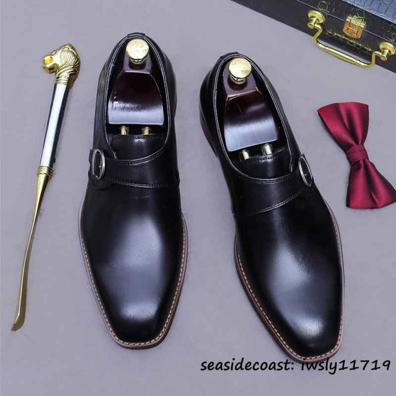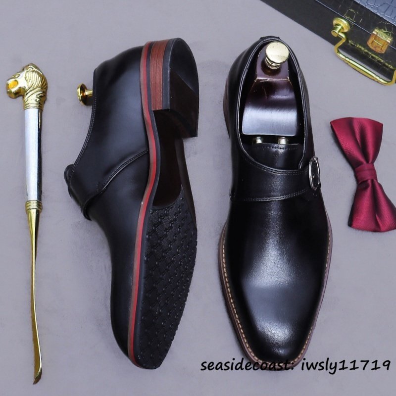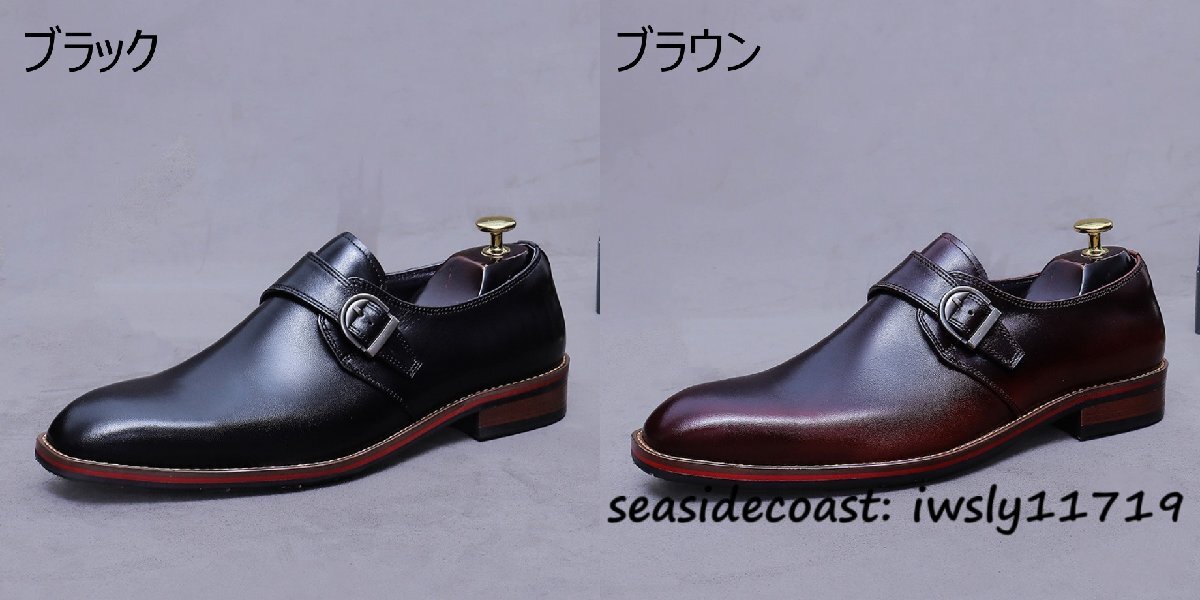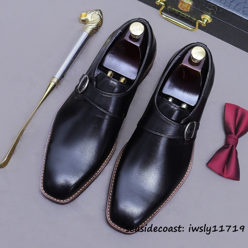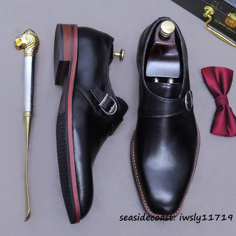 定価11万◆メンズ モンクストラップ 最高級 ビジネスシューズ 職人手塗仕上げ 本革 レザーシューズ 天然牛革 紳士靴 革靴 ブラック 24.5cm