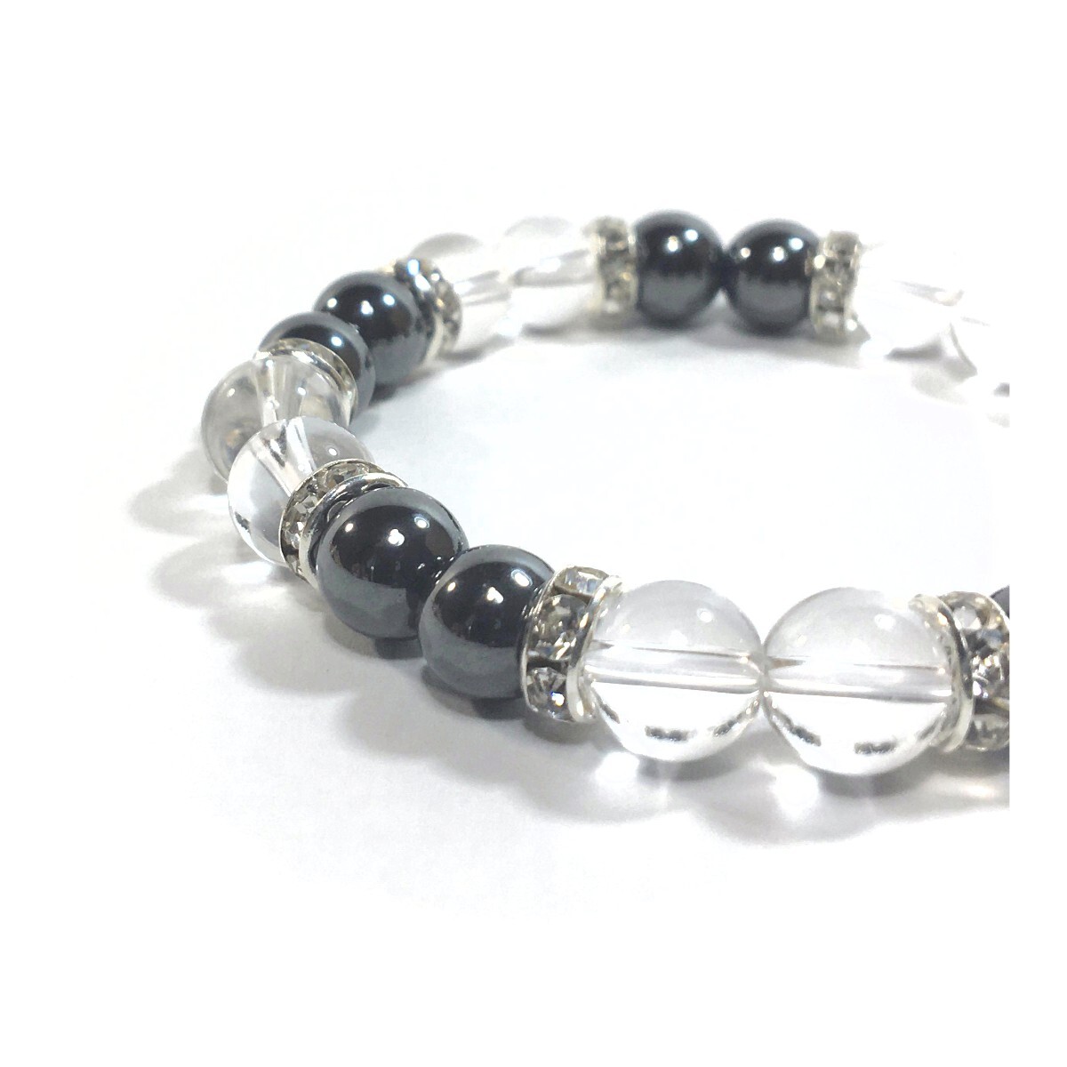 ヘマタイト&水晶 パワーストーン ブレスレット 天然石ブレス シルバー 8mm /開運 浄化 4月 誕生石 クリスタル レディース 通販