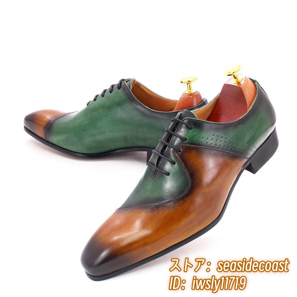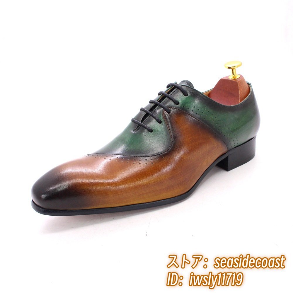定価9万超★ビジネスシューズ メンズ 職人手作り 切替 新品 最高級 本革 レザーシューズ 超希少 高級牛革 紳士靴 フォーマル 革靴 25.5cm
