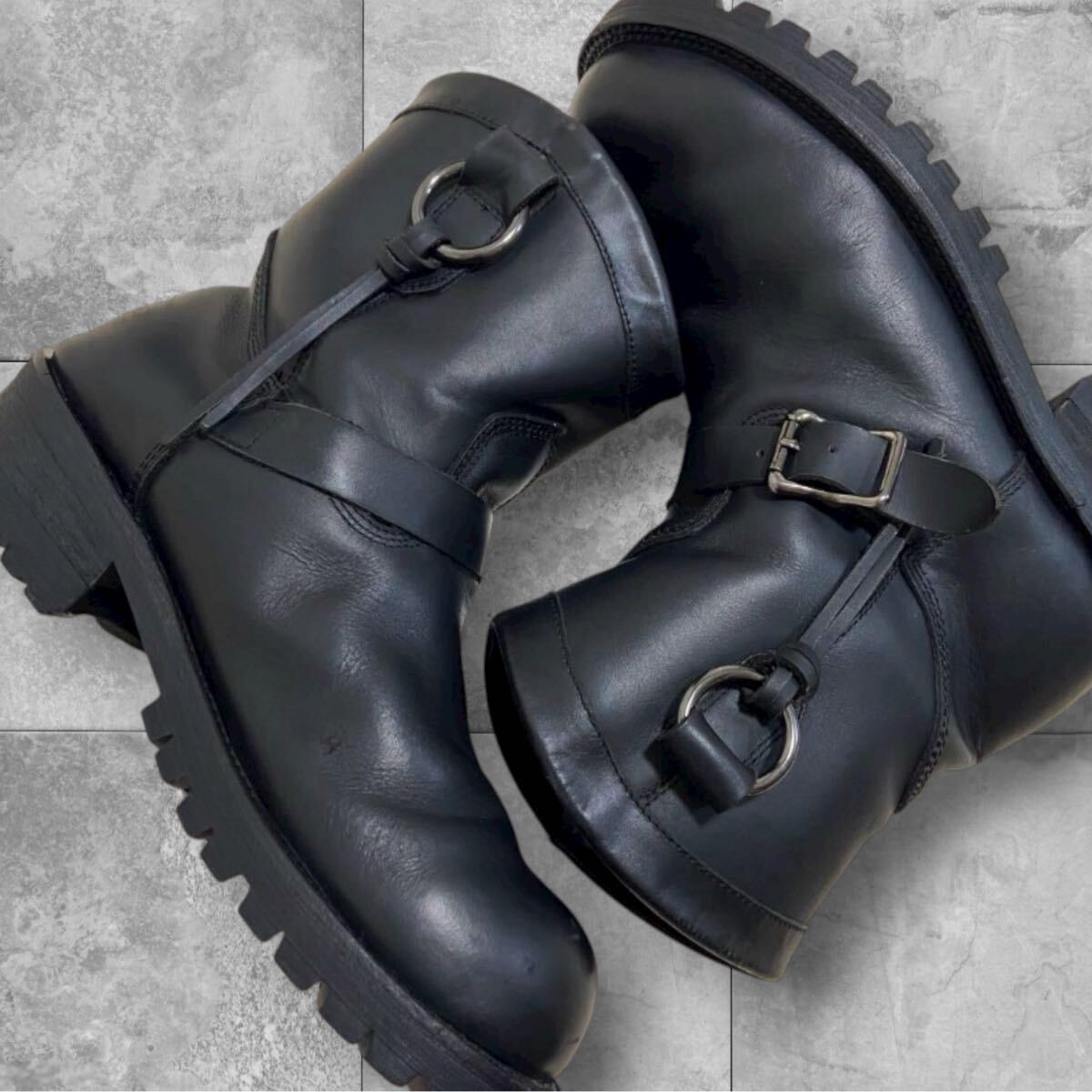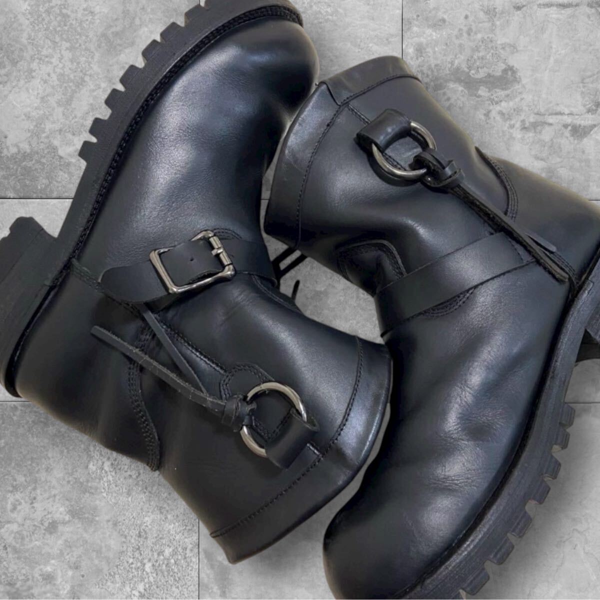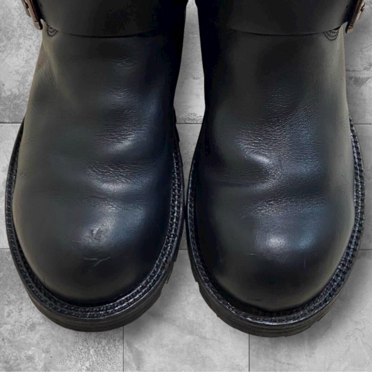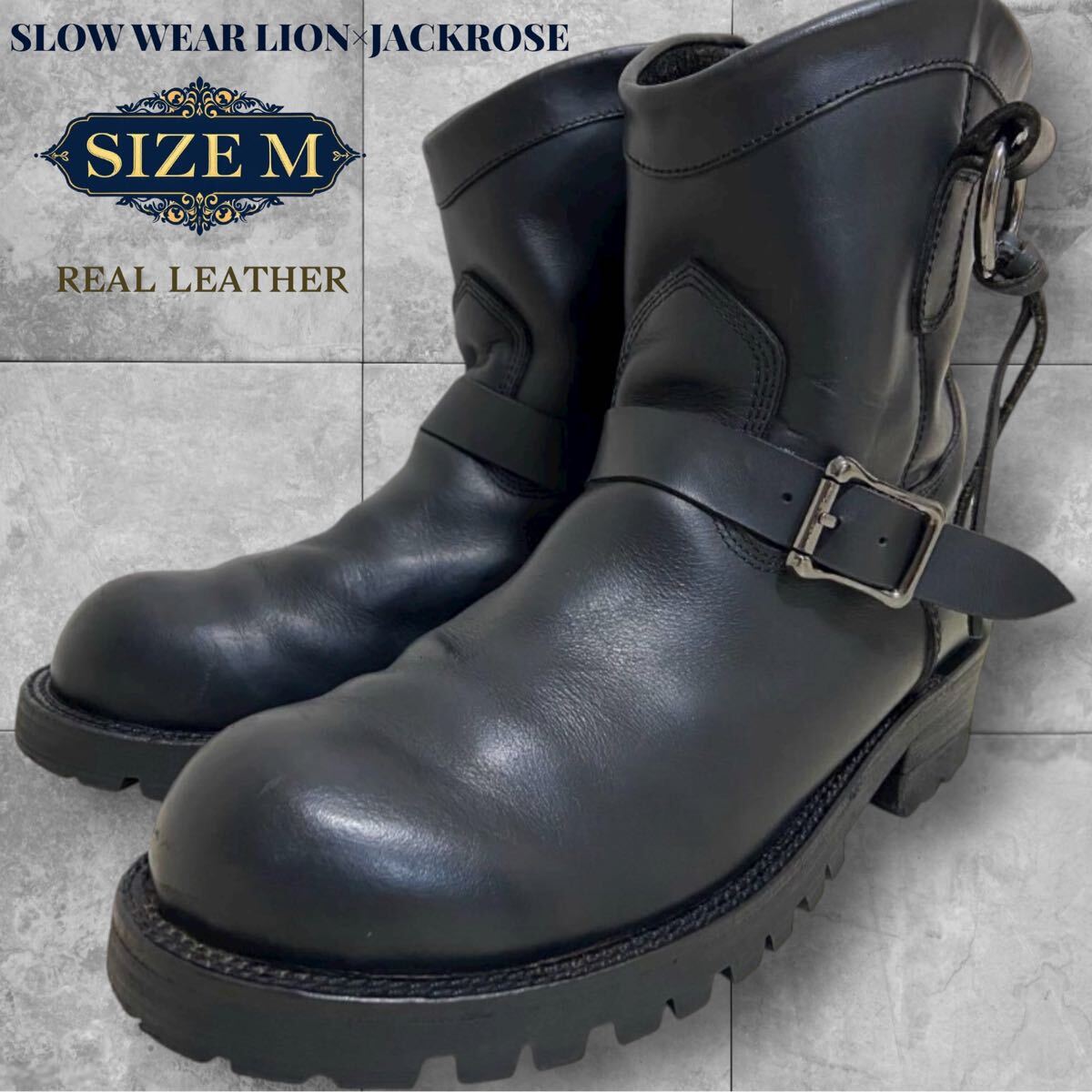 SLOW WEAR LION×JACKROSE別注のリアルレザーエンジニアブーツ。完売品。熟練の職人による日本人の足型に合せた独自の木型を採用。ジャストサイズを目指した圧倒的な履き心地により多くのファンを抱える。超耐久を備えた選び抜かれたリアルカウレザー。経年変化が楽しめる肉厚なオイルドレザーを無骨なエンジニアブーツに。スキのない仕上がりと独特の存在感。繊細な工程を熟練の職人が造り上げる。カラーはブラック。サイズ表記はメンズMで26-26.5cm相当ですが、サイズ感に関しては個人差があるのでご自身で調査してください。オイルメンテナンス&簡易清掃済。正規品。