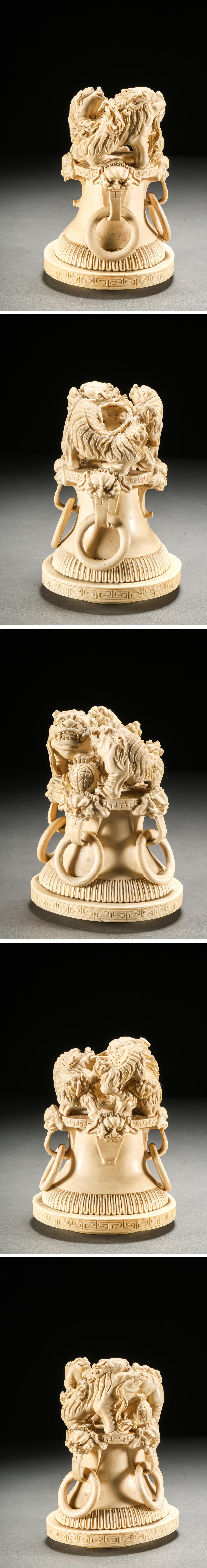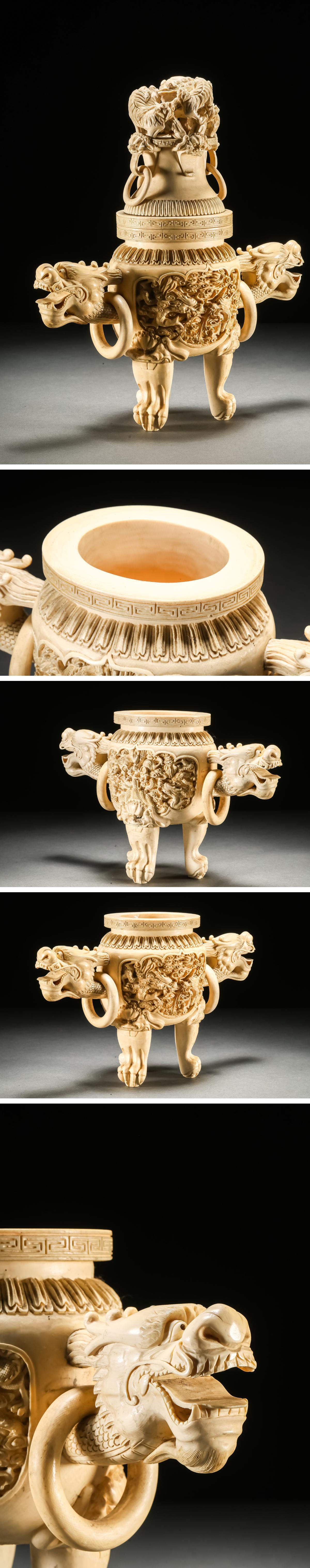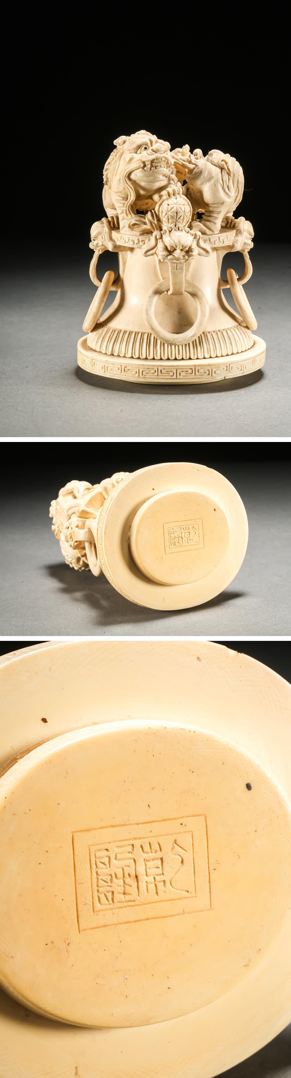 【雲錦】某有名オークション買入 時代物 特殊白材 巨大双龍耳香爐3.2㎏ 骨董品 古美術Z-40S10