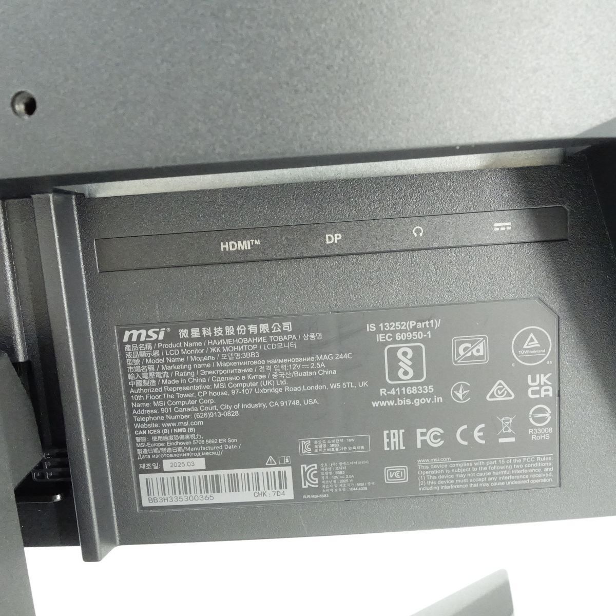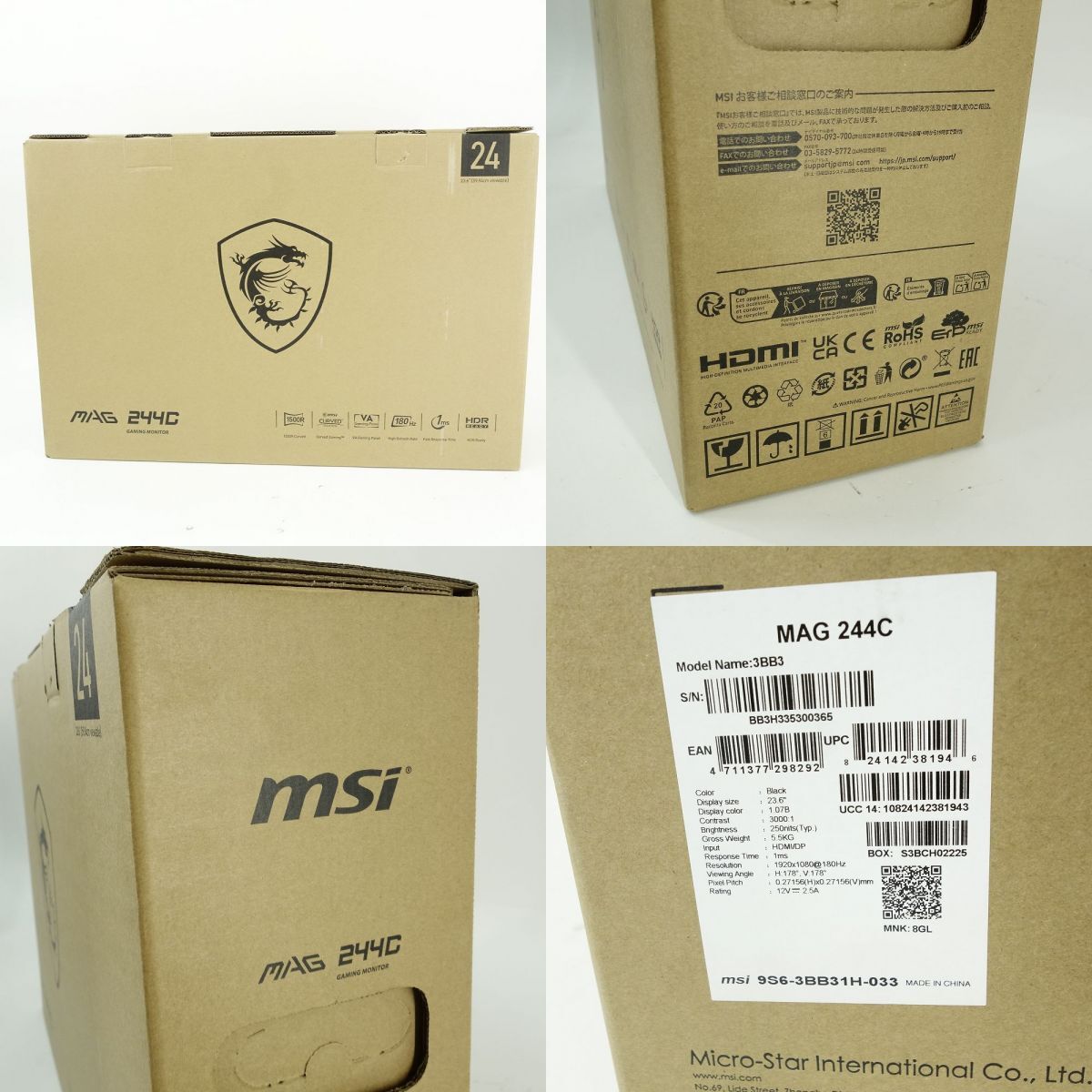 099 MSI/エムエスアイ MAG 244C 23.6インチ ゲーミングモニター 1920×1080 ※中古 □付属品:外箱、電源ケーブル、ACアダプタ、印刷物、HDMIケーブル ※画像にあるもので全てです □保証:なし ※当方での発行や記入などは致しかねます。 □仕様 ・画面サイズ:23.6インチ ・パネル種類:ノングレア(非光沢) ・解像度:1920×1080 ・輝度:250cd/m2 ・コントラスト比:3000:1 ・視野角(上下/左右):178°/178° ・入出力端子:HDMI2.0、DisplayPort1.2 □動作確認内容 ・通電及び起動確認済み。 ・各入力使用、動作確認済み。 ・HDMI接続確認済み。 ※動作確認環境の関係上、上記のみの確認となります。 万が一不良があった場合の当方の対応は 返金、返品のみとなります。 □状態 ・本体には細かなスレキズや汚れが見られますが大きなダメージはありません。 ・液晶には細かなスレキズや汚れが見られます。 ・外箱にスレキズや汚れ、剥げが見られます。 ※画像では判別しづらいUSED品特有の薄い汚れや薄いキズ、細かいキズなどある場合があります。 |