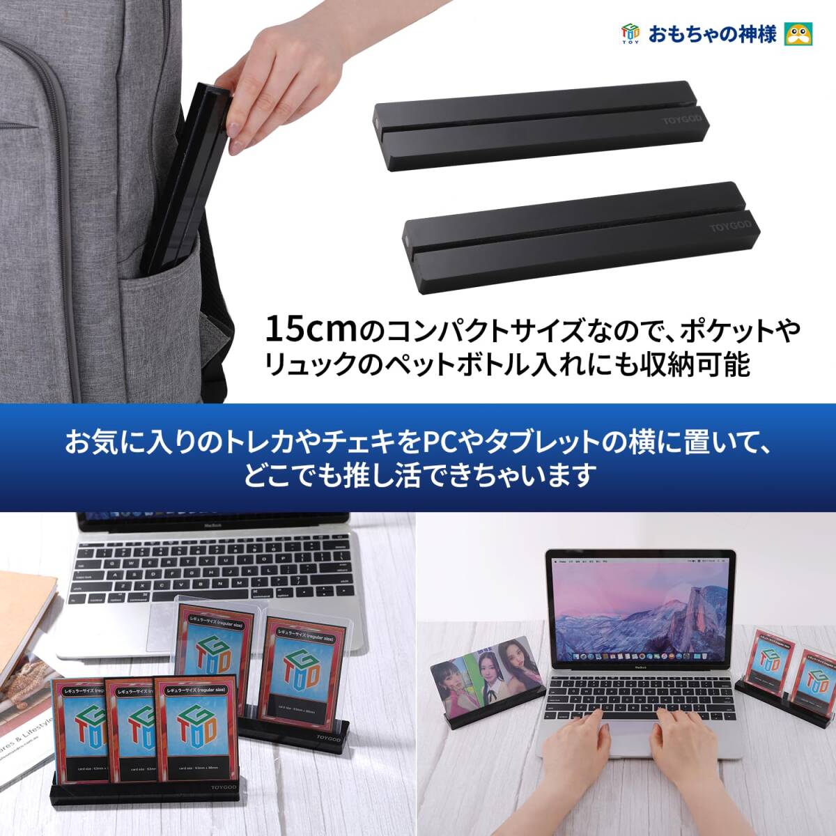 【様々な活用方法】トレカ・ボドゲの対戦、効果発動中のカードを置いてわかりやすく、デッキ構築時の検討カード置き場、対戦相手とのスタンドシェア、机やケースへのディスプレイ、推し活用など